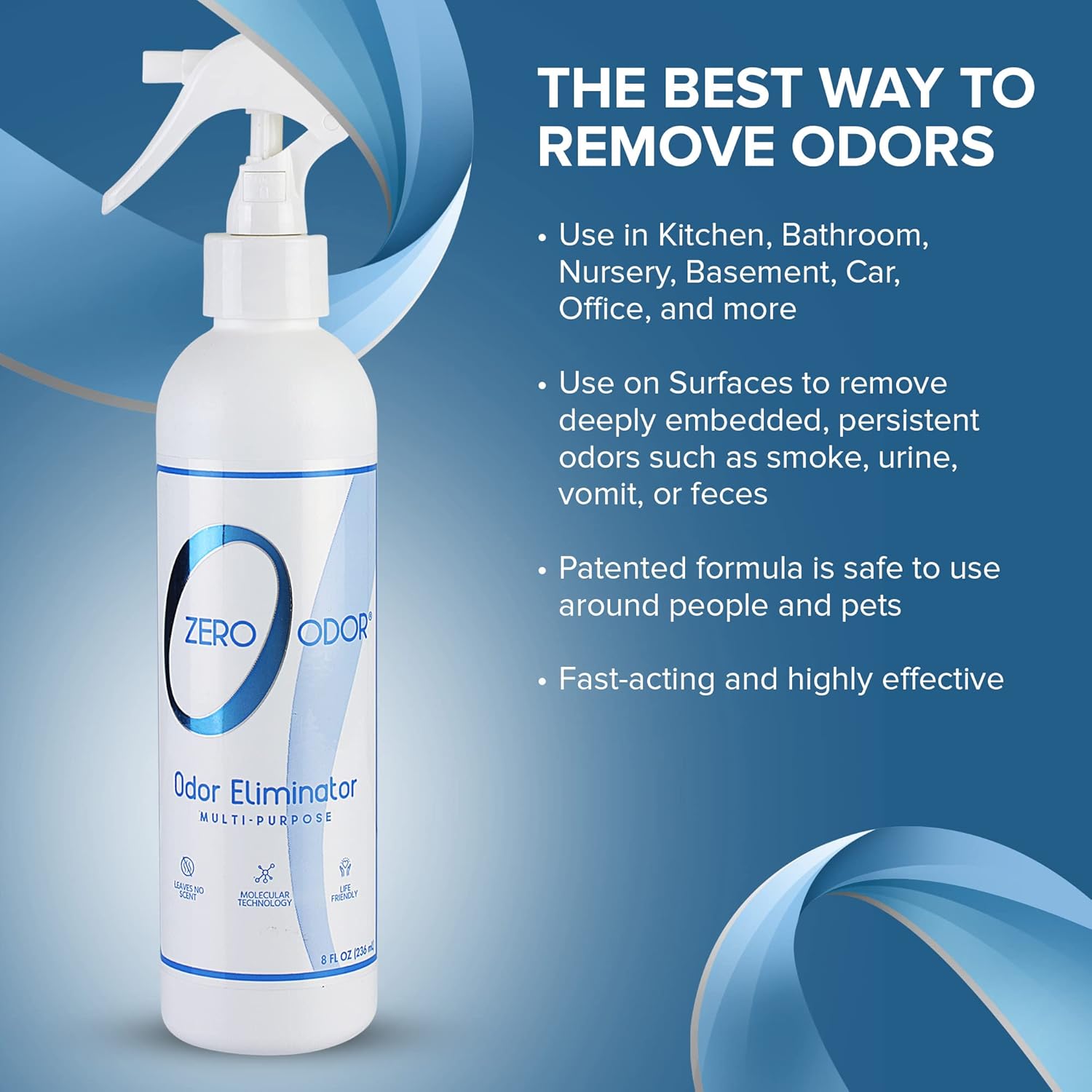 Zero Odor Multi-Purpose Odor Eliminator - Eliminate Air & Surface Odor – Patented Technology Best for Bathroom, Kitchen, Fabric, Closet- Smell Great Again, 8oz (Over 1000 Sprays)