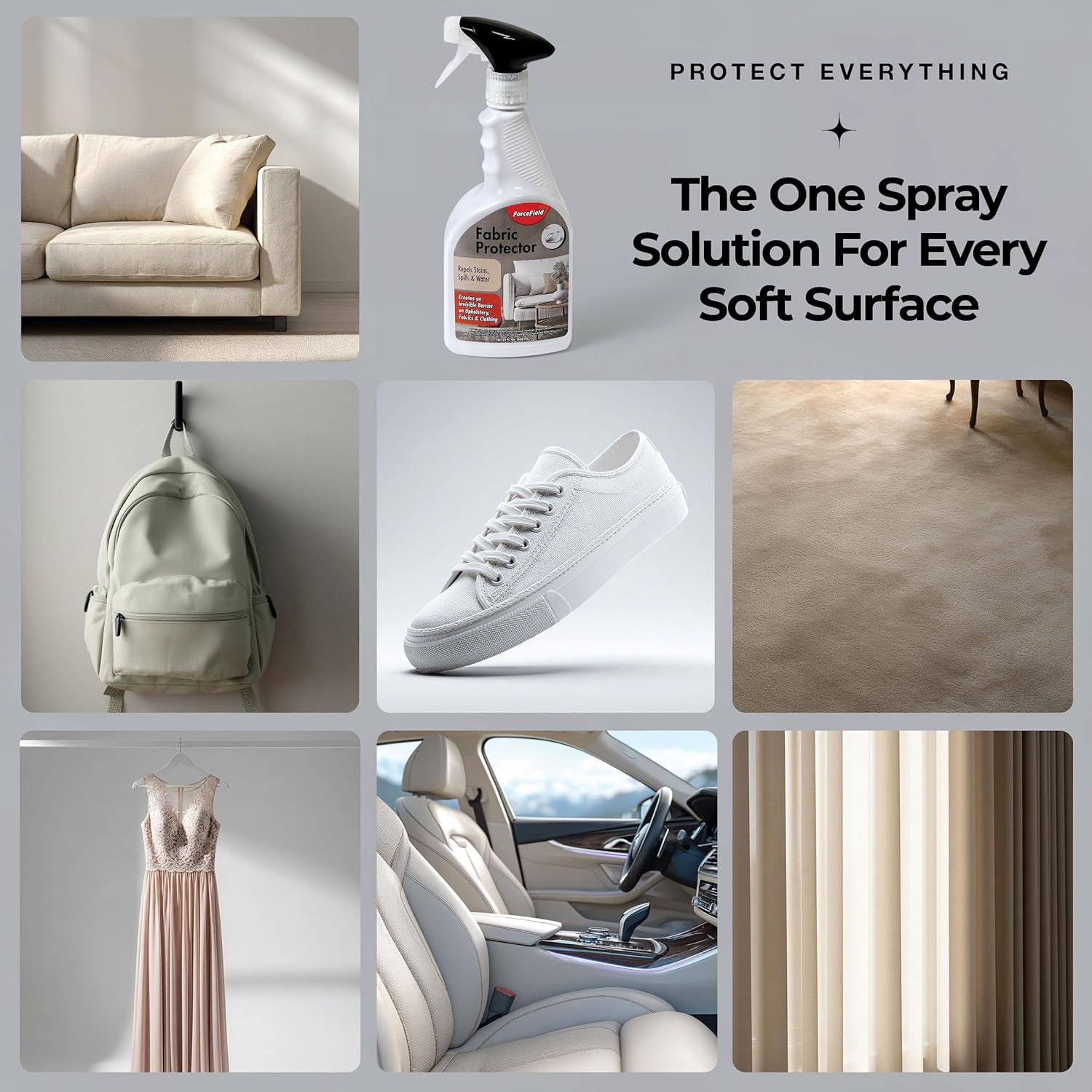 ForceField Fabric Protector Spray – Long-Lasting, Non-Toxic Water & Stain Repellent – Safe for All Fabrics – Indoor & Outdoor Use – 22 oz