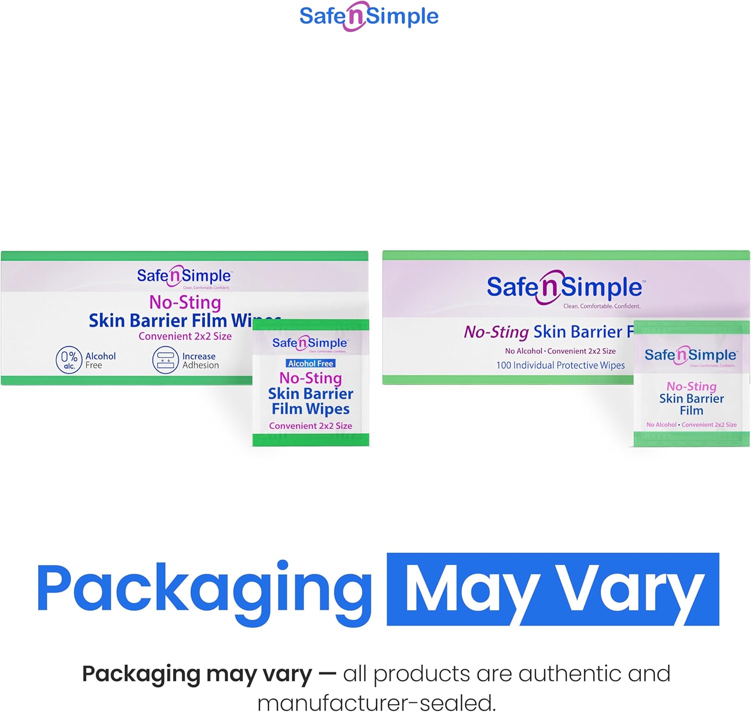 Safe n' Simple No Sting Skin Prep Wipes - 100 Individual Ostomy Barrier Film 2.4" x 2.4" - Skin Barrier Film Wipes for Ostomy - Protective Sting Free Skin Barrier