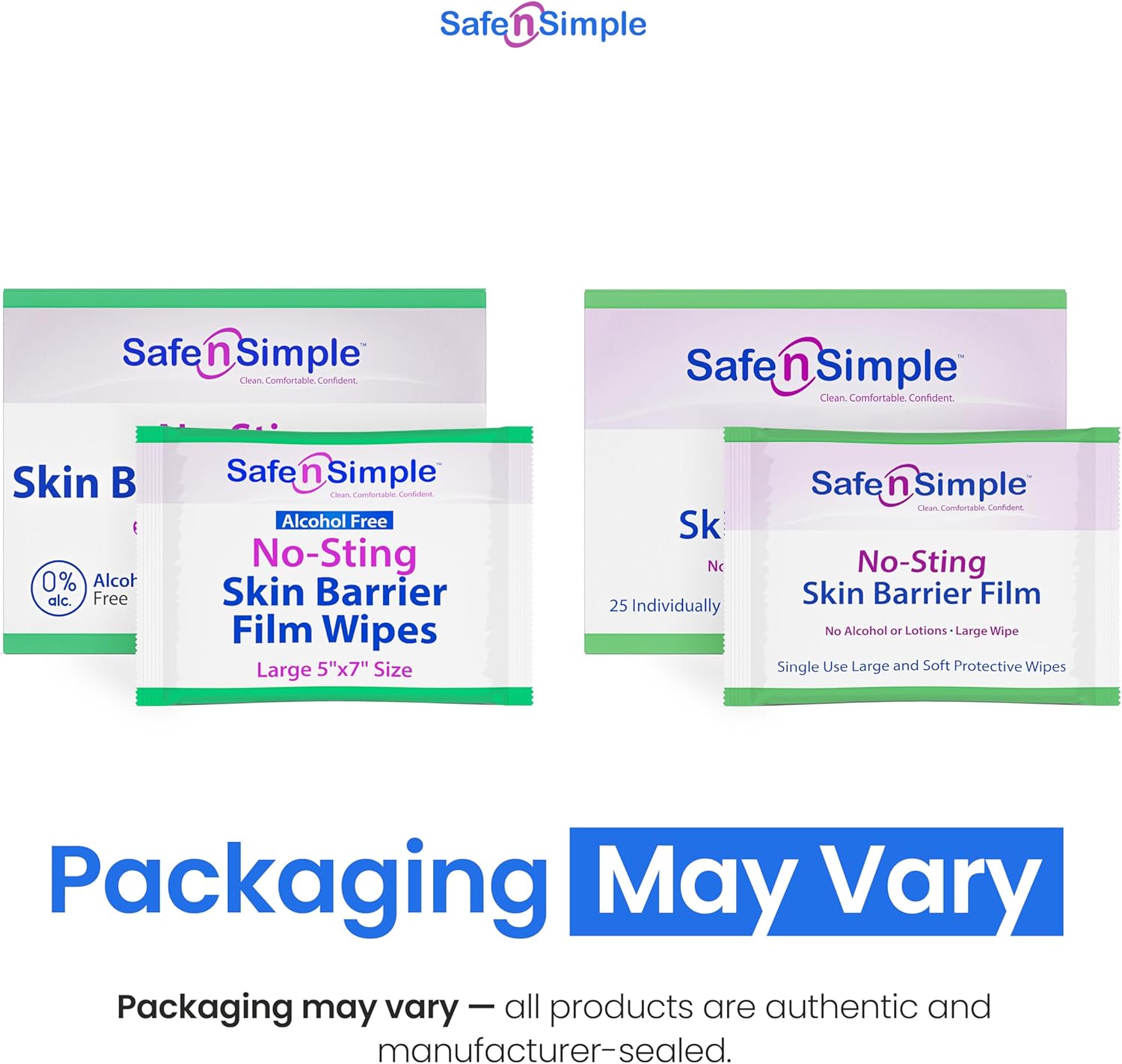 Safe n' Simple Skin Barrier Wipes - 25 Large 5” x 7” Individually Wrapped No-Sting Barrier Film - Skin Prep Protective Wipes - Medical Bandage Barrier Film for Skin