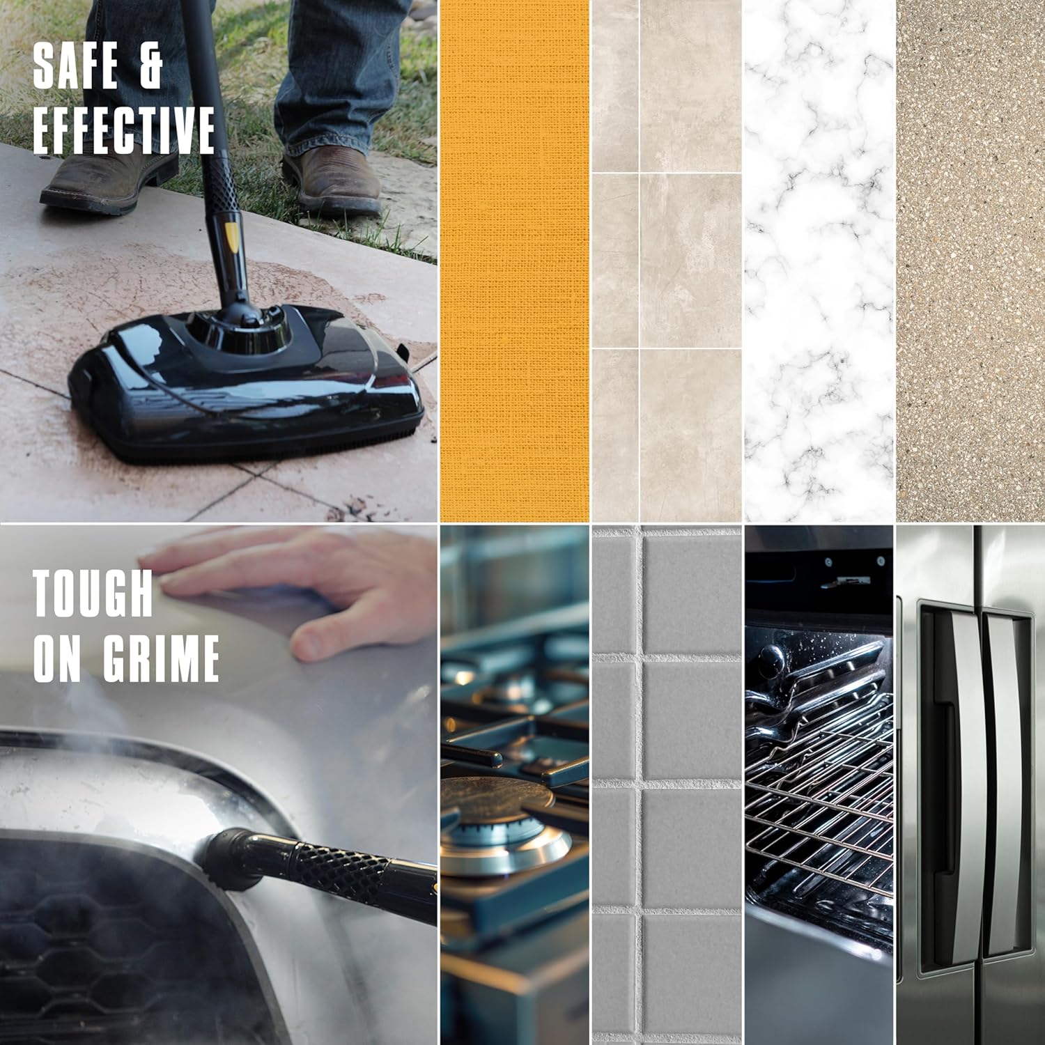 • CHEMICAL-FREE CLEANING — Naturally deep clean without the use of harsh chemicals using hot, pressured steam to eliminate grease, grime, and stains from a wide range of surfaces including tile, grout, granite, laminate, appliances, grills, autos, and more.