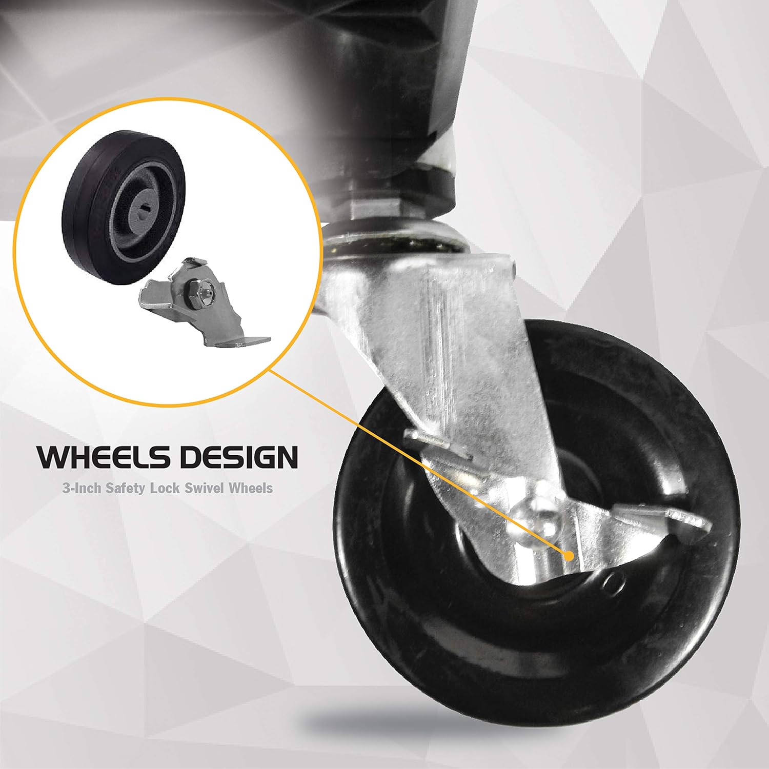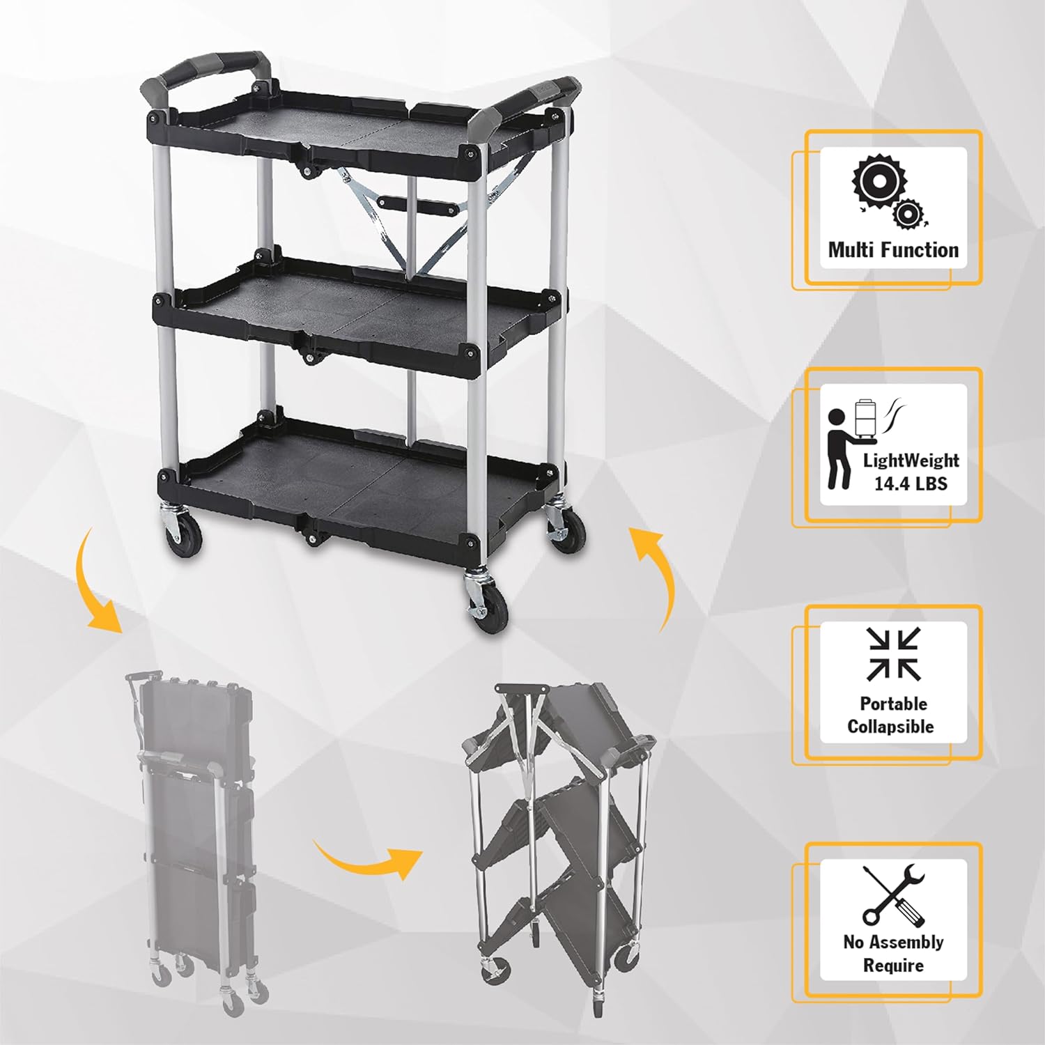 • Ergonomic Design: It has 3 collapsible shelves designed to offer you plenty of space when moving equipment, tools, files, garden supplies and more; It can be folded down to 8 inches to store away easily