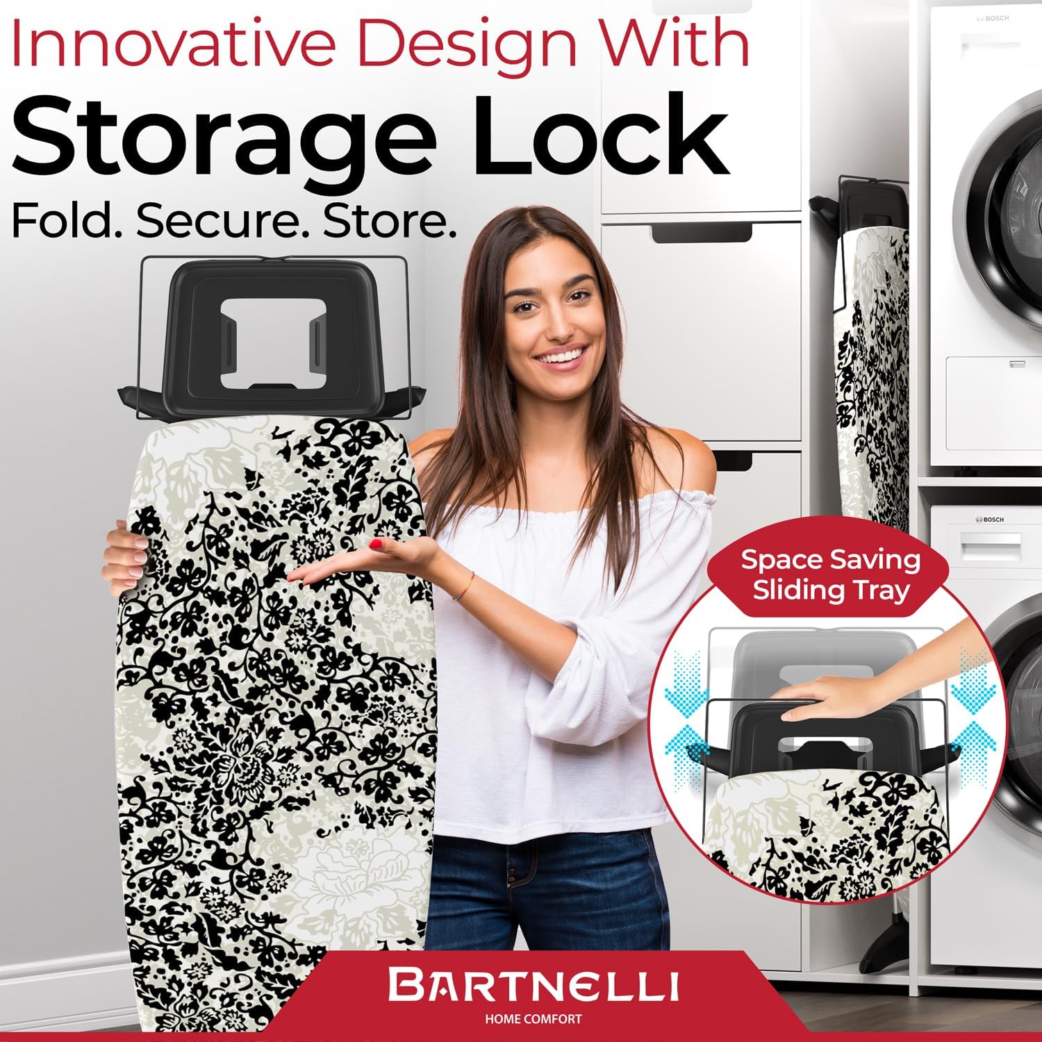 Bartnelli Pro Luxury Ironing Board - Extra Wide 62x19” Steam Iron Rest, Adjustable Height, T-Leg Foldable, European Made