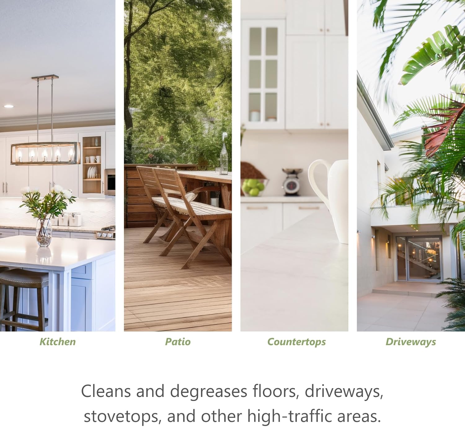 • Concentrated formula dissolves grease, dirt and grime in high traffic areas. Safe for daily use.