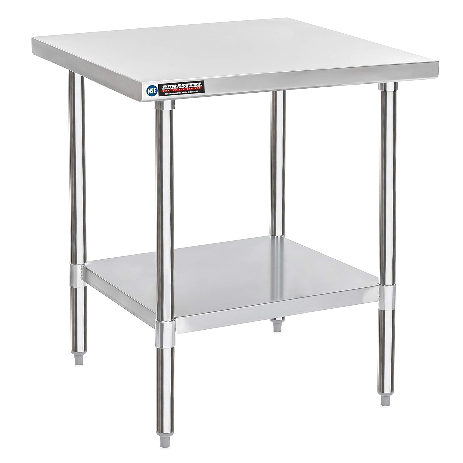 DuraSteel 30x30 Stainless Steel Work Table - NSF Commercial Prep Metal Table - Outdoor Pizza Oven Stand w/Under Shelf - Kitchen Island Laundry Utility Garage Microwave Stand Large Rolling Storage Cart