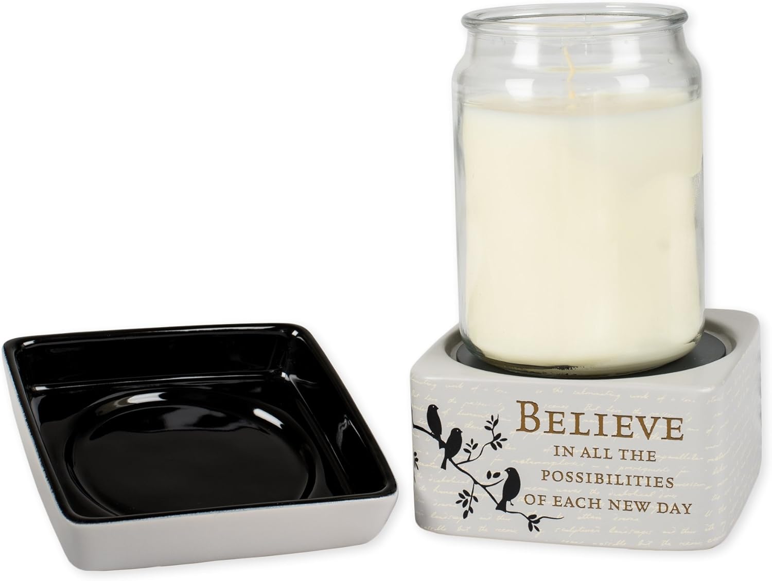 • This 2-in-1 candle warmer is created exclusively by Elanze Designs; Functional and beautiul with its inspirational artwork and thoughtful sentiment
