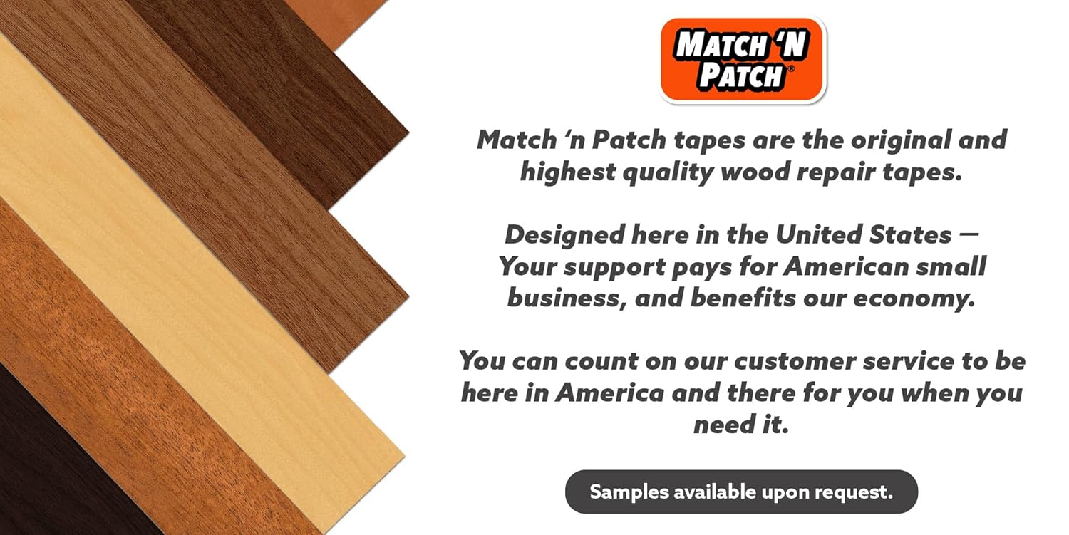 • TOUGH & REALISTIC: MATCH 'N PATCH presents a 2.25 inch x 15 feet roll of wood repair tape, featuring a robust and authentic wood appearance. Expertly designed in North Carolina, this tape is the original repair tape solution for wood repairs.