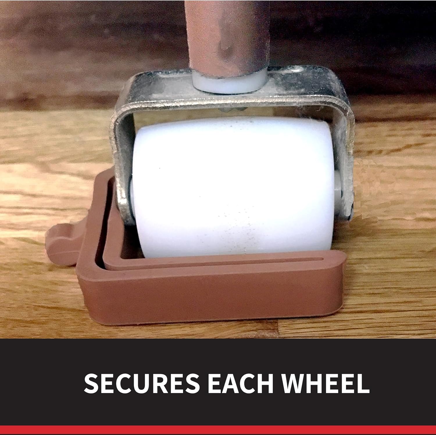 iPrimio No Lift Wheel Stoppers for Rolling Furniture - Bed and Furniture Stopper - Requires No Lifting of Bed - Keeps Bed and Furniture from Sliding Bed Caster Stopper - Solid Rubber (4 Pack, Brown)