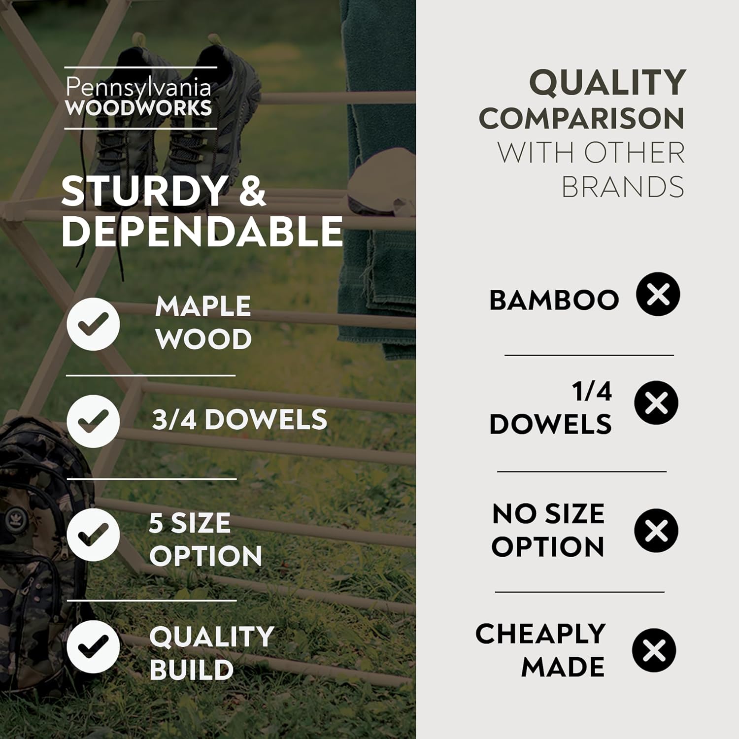 Pennsylvania Woodworks Clothes Drying Rack: Solid Maple Hard Wood Laundry Rack for Baby Clothes, Hand Towels, Delicates & More, Durable Small Folding Drying Rack, Made in USA, No Assembly Needed