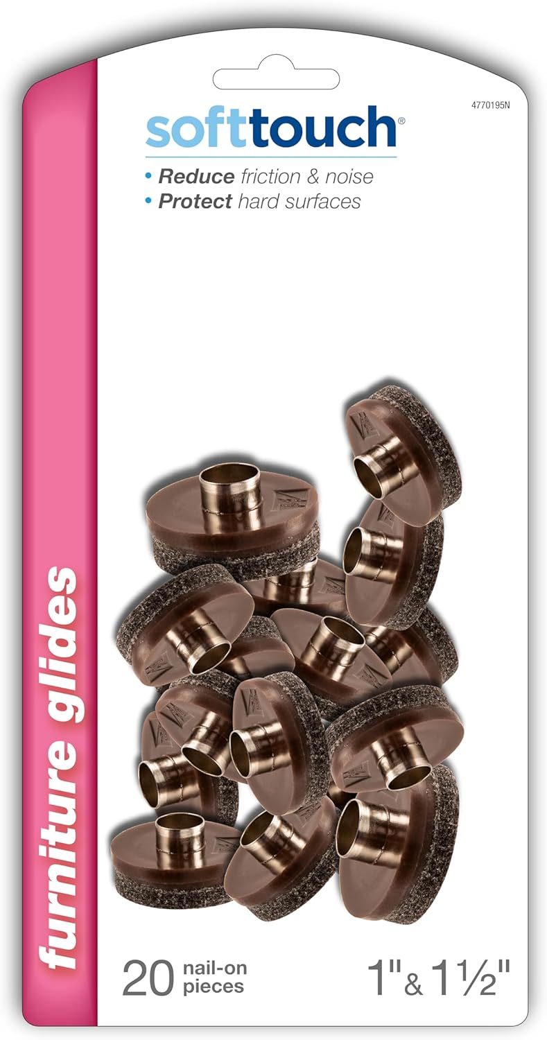 Nail-on, Heavy Duty Felt Pads for Wood Furniture and Hard Surfaces Value Pack (20 piece) - Walnut Brown, Round 1" in & 1.5" in