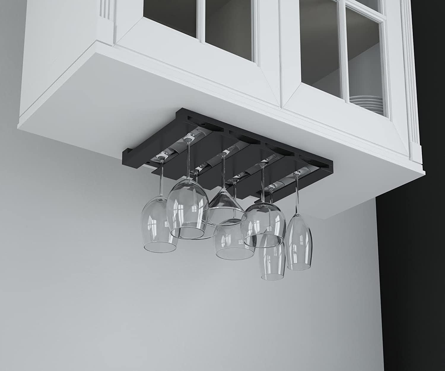 • EASY TO INSTALL - Get your glasses off the counter in less than 5 minutes. Easy to mount under cabinet with the screws provided. Fits 6 to 12 glasses (depends on the diameter of the glass base)