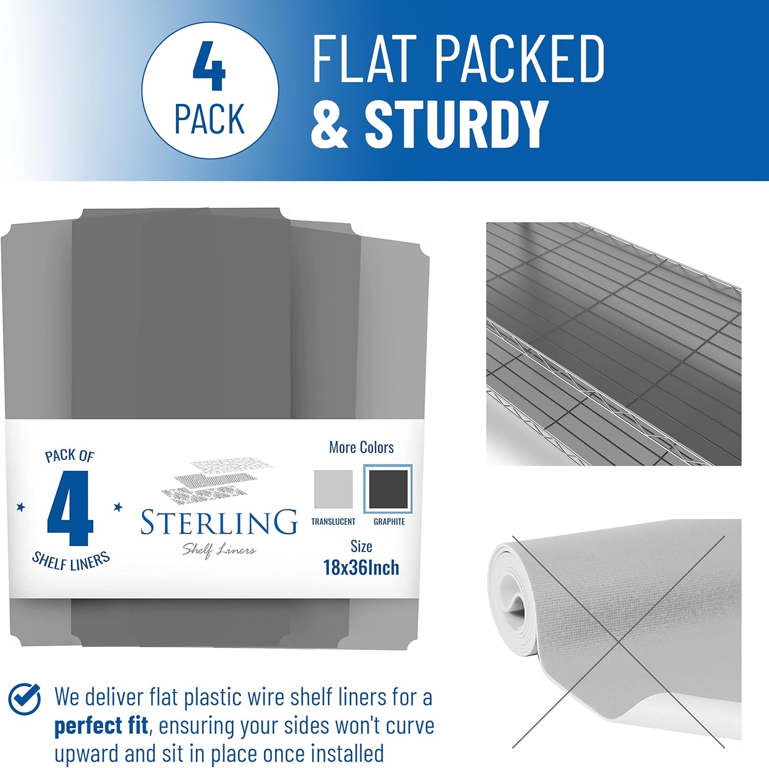 Sterling Shelf Liners Wire Rack Covers: Long-Lasting Shelf Liner Cover for Wire Shelving: Premium Cover Mats for Shelves in Pantry, Closet, etc: 18x36 Inch: Graphite, Set of 4