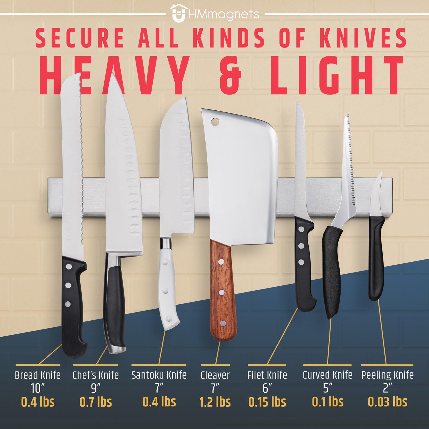 • FIT ANY KNIFE: This knife strip can hold any type of knife firmly without slipping or shifting, making it perfect for Chef's knives, Butcher knives, Cleavers, Bread knives, Carving knives, and more.