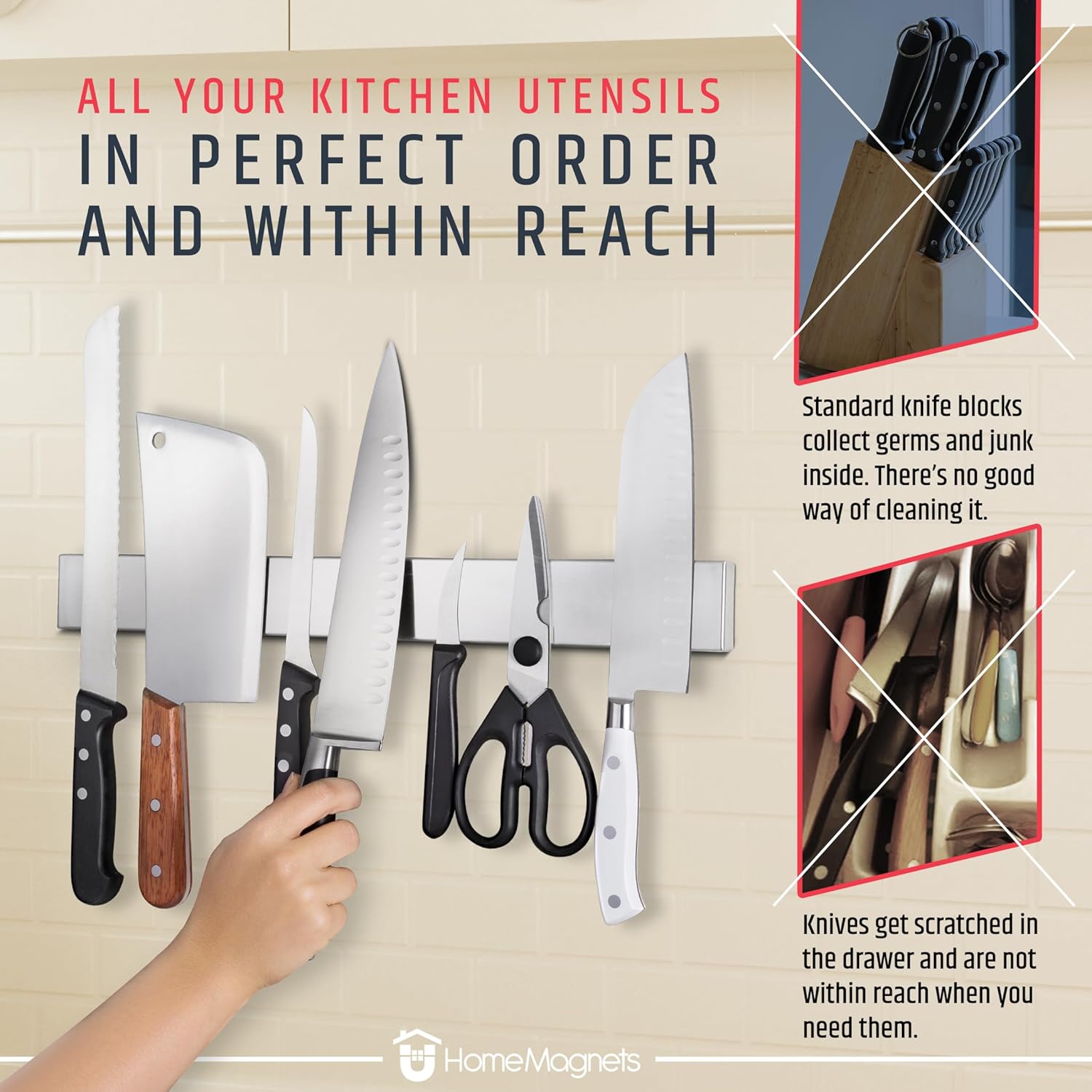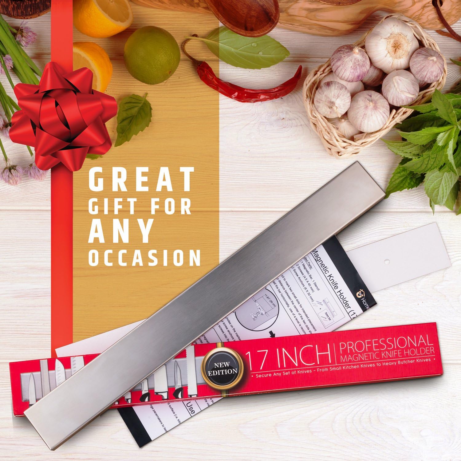 HMmagnets Premium 17 Inch Stainless Steel Magnetic Knife Holder For Wall - Professional Magnetic Knife Strip - Space-Saving Knife Rack/Knife Bar With Powerful Magnetic Pull Force (Upgraded Version)