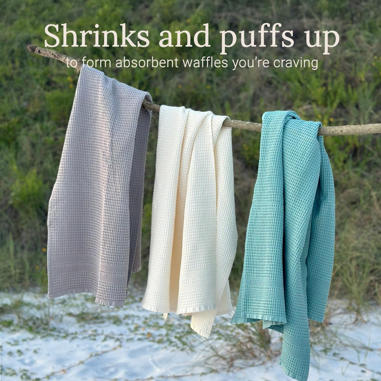 • Goodbye, Damp Towels: Quick dry bath towels dry in half the time of traditional terry towels, saving you 40% on energy and time. The breathable weave of our waffle bath towel stays fresh and odor-free, even in damp bathrooms. Lint-free and snag-free.