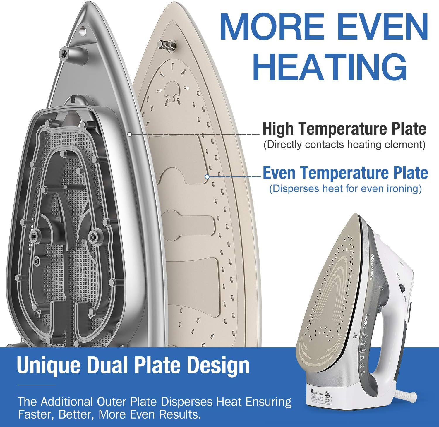 • Double Ceramic Soleplate: Harder than stainless steel, super scratch resistant, and more durable and easier to clean; Protect your delicate clothes with a unique double-layer design that ensures even heating of the entire soleplate