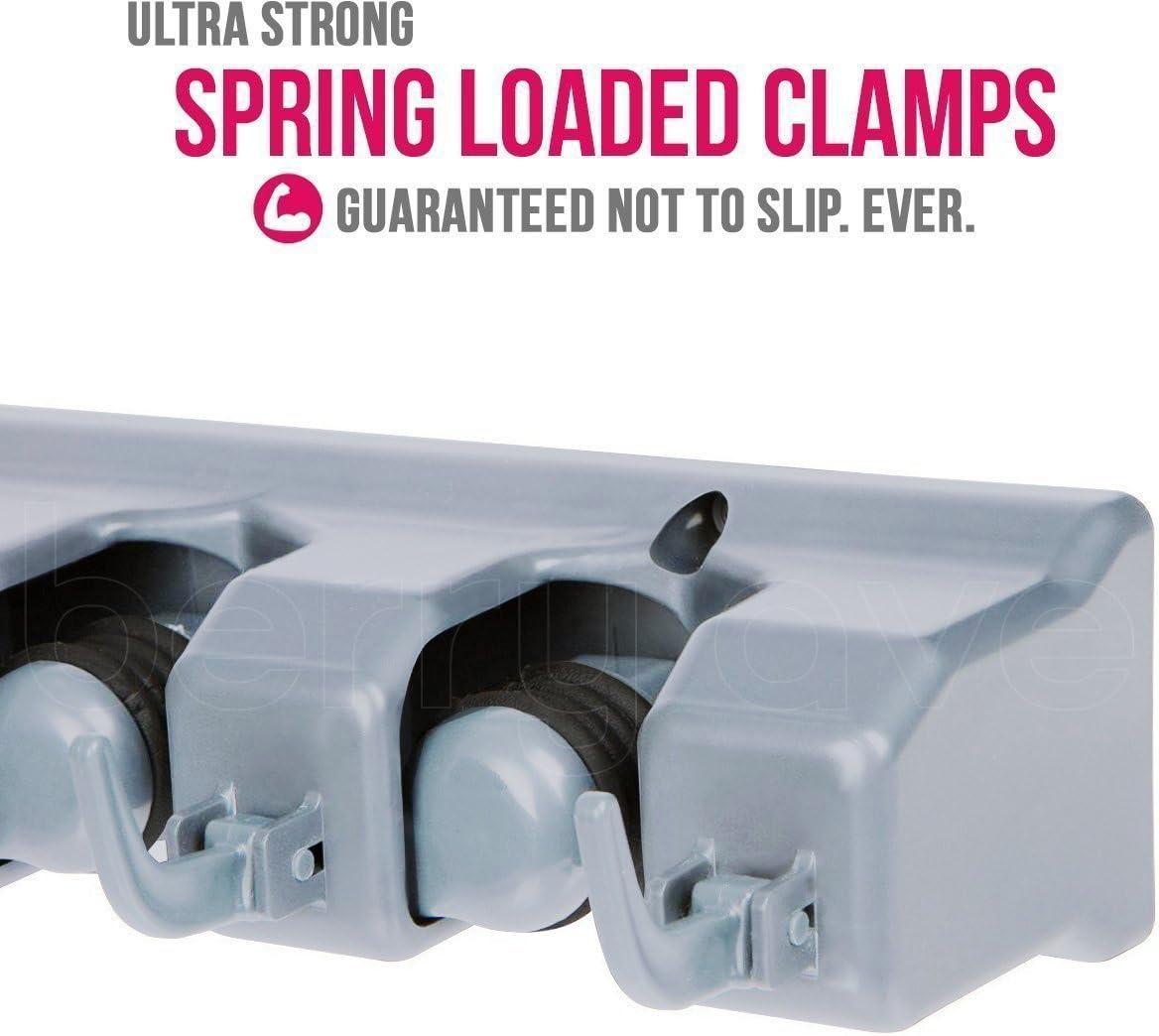 • NO SLIDE, NO MESS – Each commercial grade broom hanger has a 35 pound holding capacity. Thanks to the spring loaded, double rubber gripped slots, the Berry Ave utility hooks can hold anything from wet mops and dirty rakes to baseball bats, without any annoying slipping.