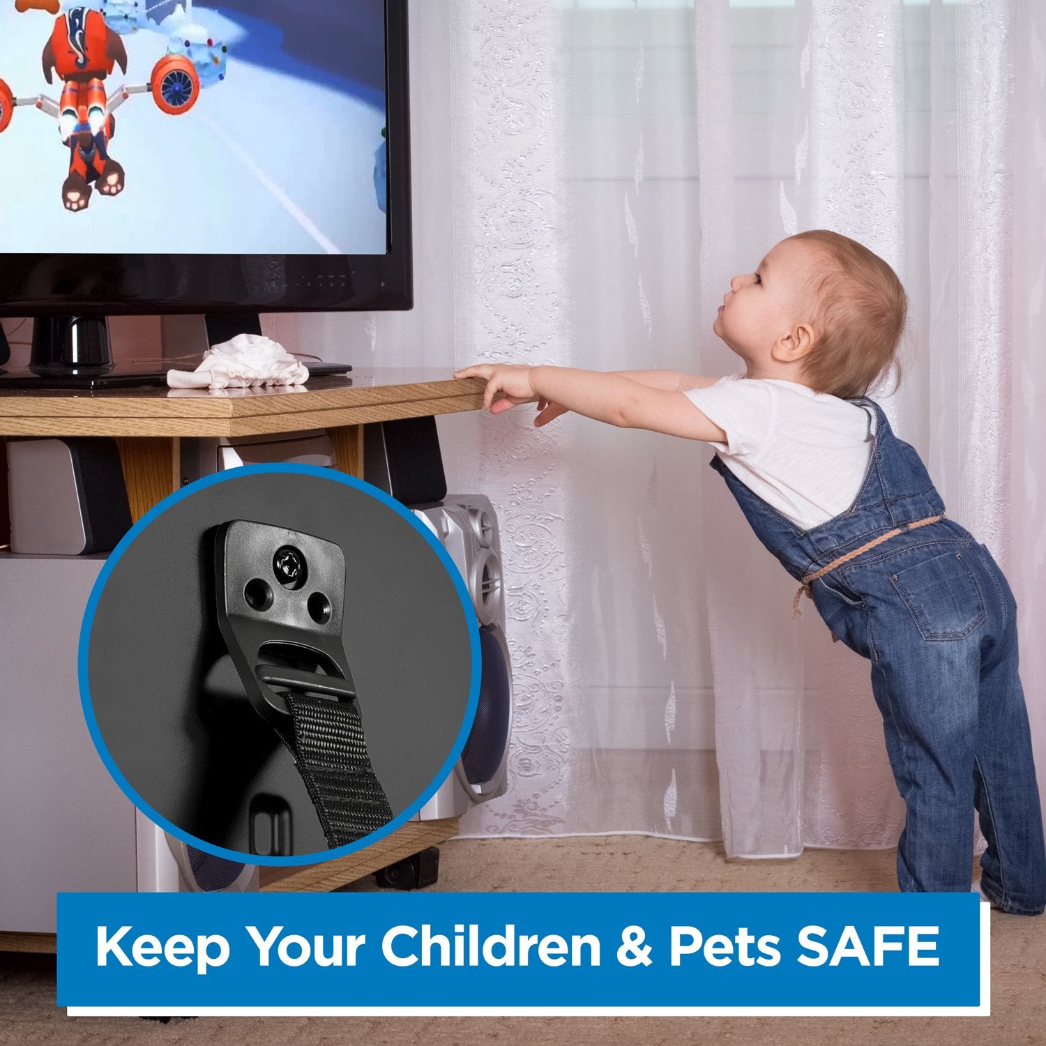 • BABY PROOF YOUR HOME AND PROTECT YOUR TV / FURNITURE: You will keep your little ones safe with our anti tip furniture kit, and will also protect your valuable TV and furniture against accidents and earthquakes. Prevent tipping accidents and save a fortune from replacing a new TV when pets knock them over.