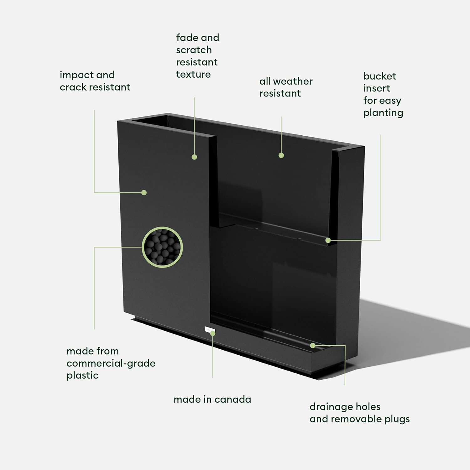 Veradek Block Series Span Plastic Planter - Tall Rectangular Planter for Indoor or Outdoor Patio/Porch | Durable All-Weather with Removable Insert Bucket | Modern Design for Plants, Flowers, Garden