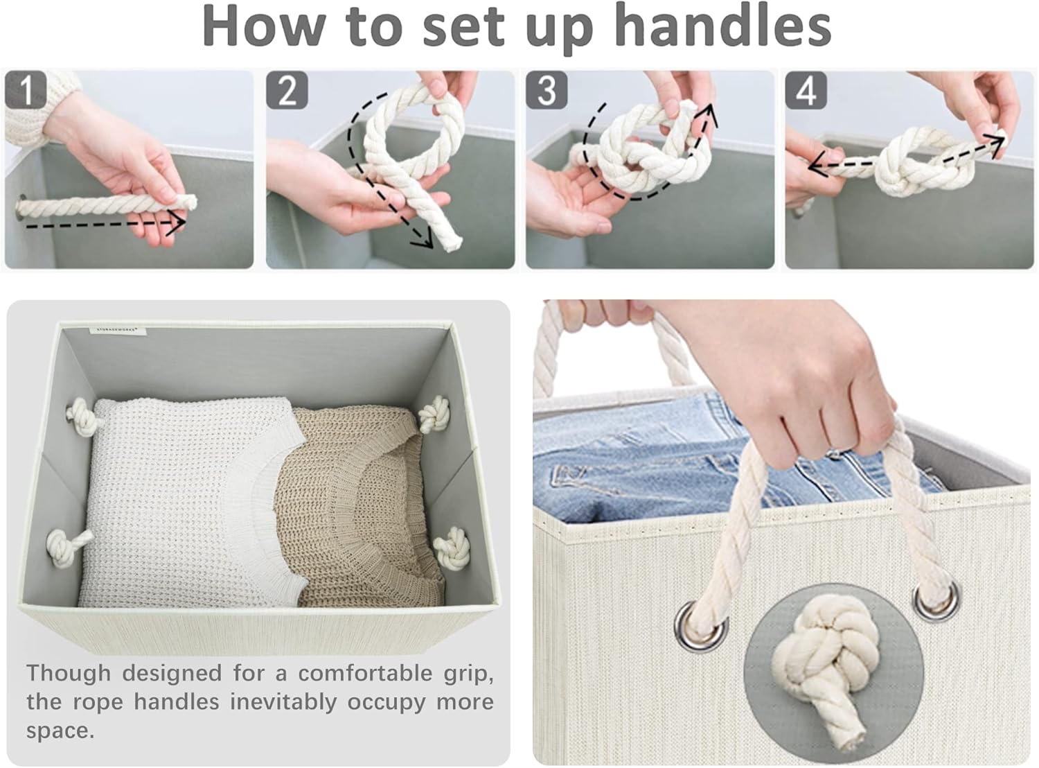 • The storage basket with 2 soft rope handles can support a weight of up to 30 pounds.