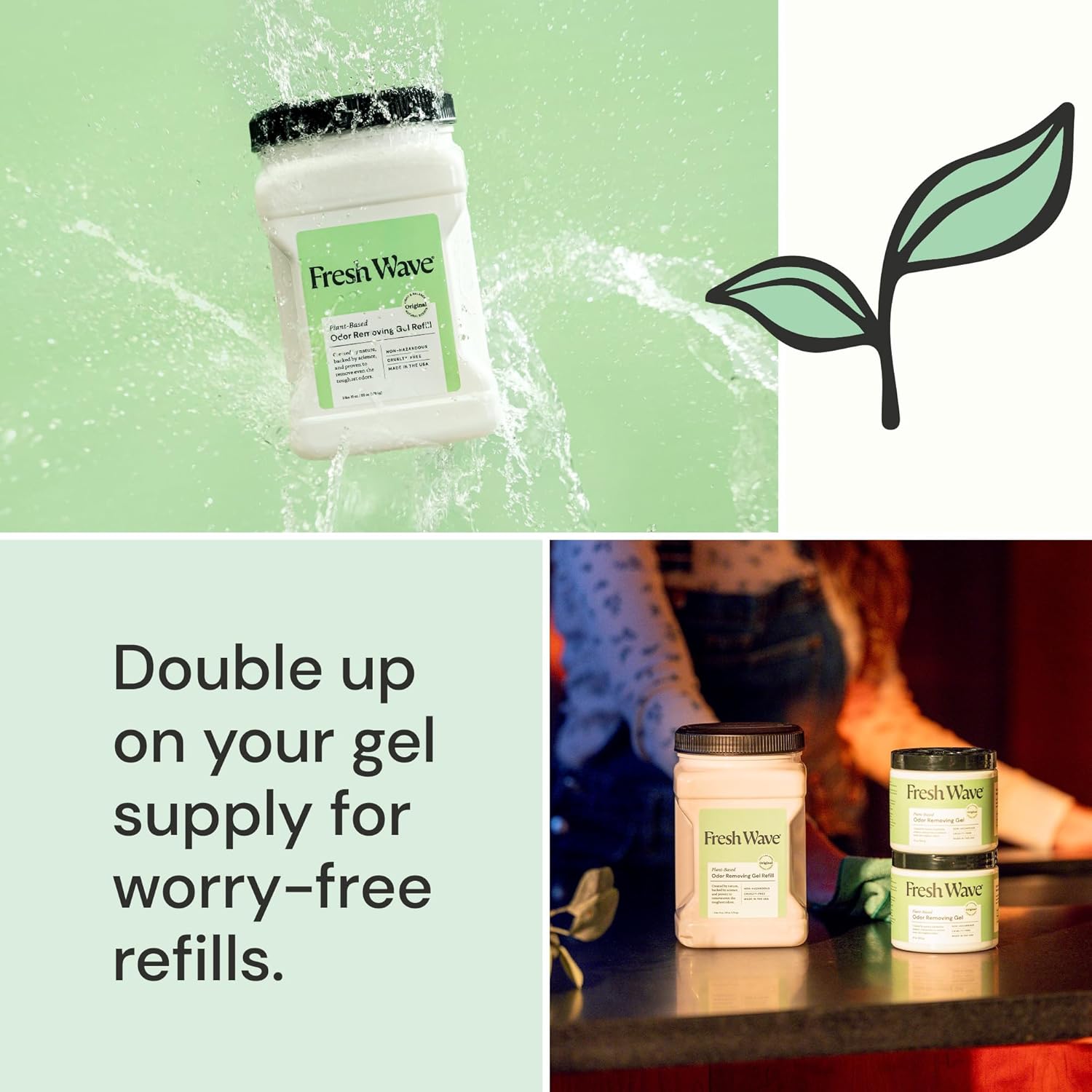 Fresh Wave Odor Removing Gel Refill, 63 oz., Pack of 2 - Safer Odor Absorbers for Home, Natural Plant-Based Odor Eliminator, Every 15 oz. lasts 30-60 Days, For Cooking, Trash & Pets