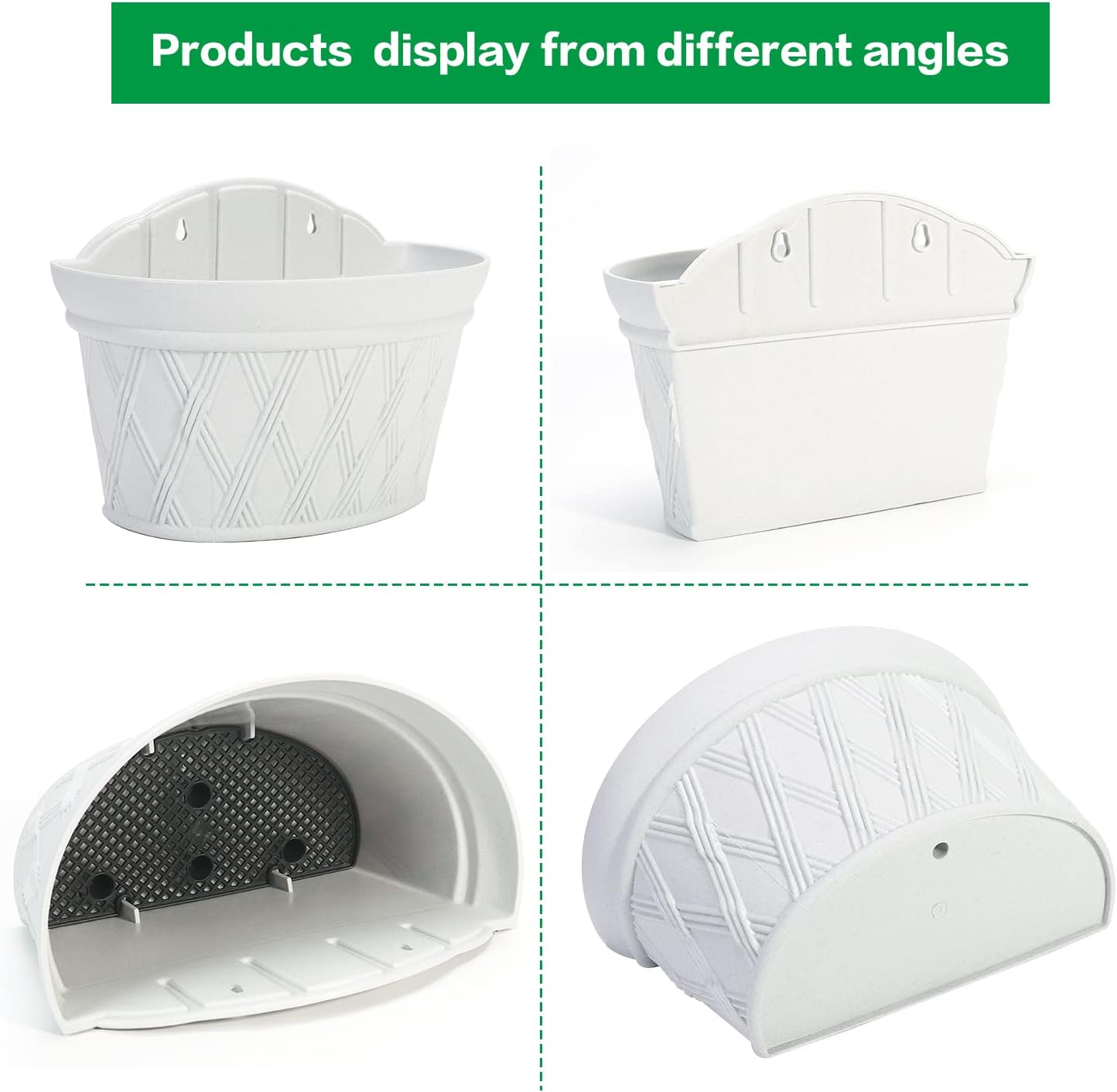 Sungmor Wall Hanging Planters,11.5 Inch Hanging Flower Pots for Railing Fence - Indoor Outdoor Balcony Wall Hanging Basket, Plastic Plant Pot Container - Half Round & 3PC Pack & Grey White