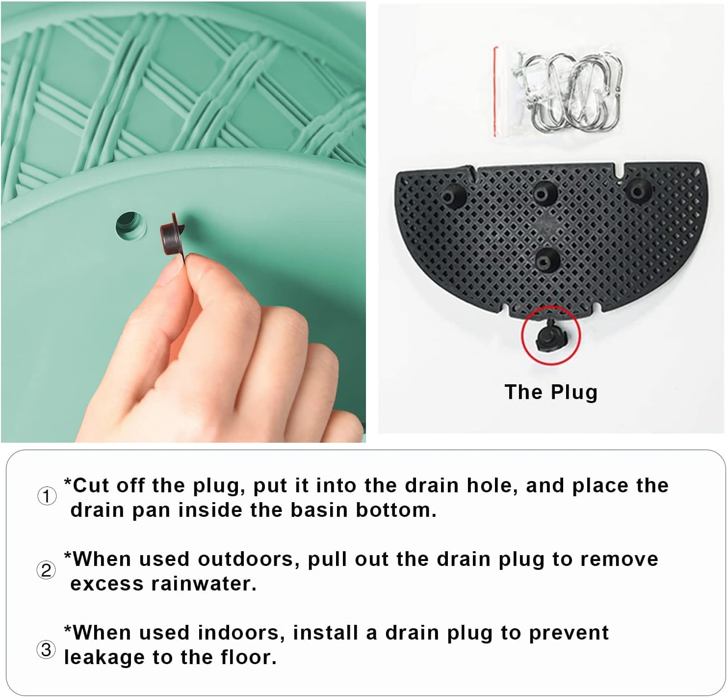 • Use instruction: Cut down the plug and put it into the drain hole,then place the drain pan at the pot bottom. Pull out drainage plug to allow for the removal of excess rainwater when installed outdoors. Install drainage plug when used indoors.