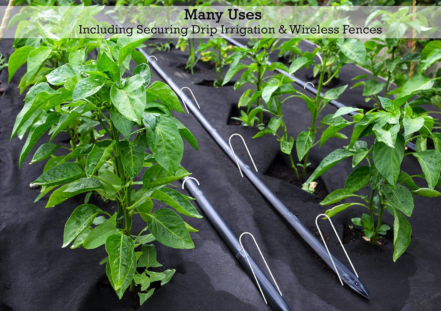 • GALVANIZED CONSTRUCTION delays rusting process and provides countless uses including securing weed barrier fabric, pet containment systems, drip irrigation systems, erosion control matting. Want to reuse them? No problem - pull them out of the ground and use them for a different application
