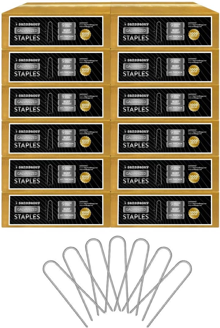 Sandbaggy Galvanized 6-Inch Landscape Staples ~ 9 Gauge Steel - Fabric Pins, Garden Earth Stakes, Ground Cover, Fence Anchors, Lawn Nails ~ Trusted by Organic Farmers Across The USA (10,000 Staples)