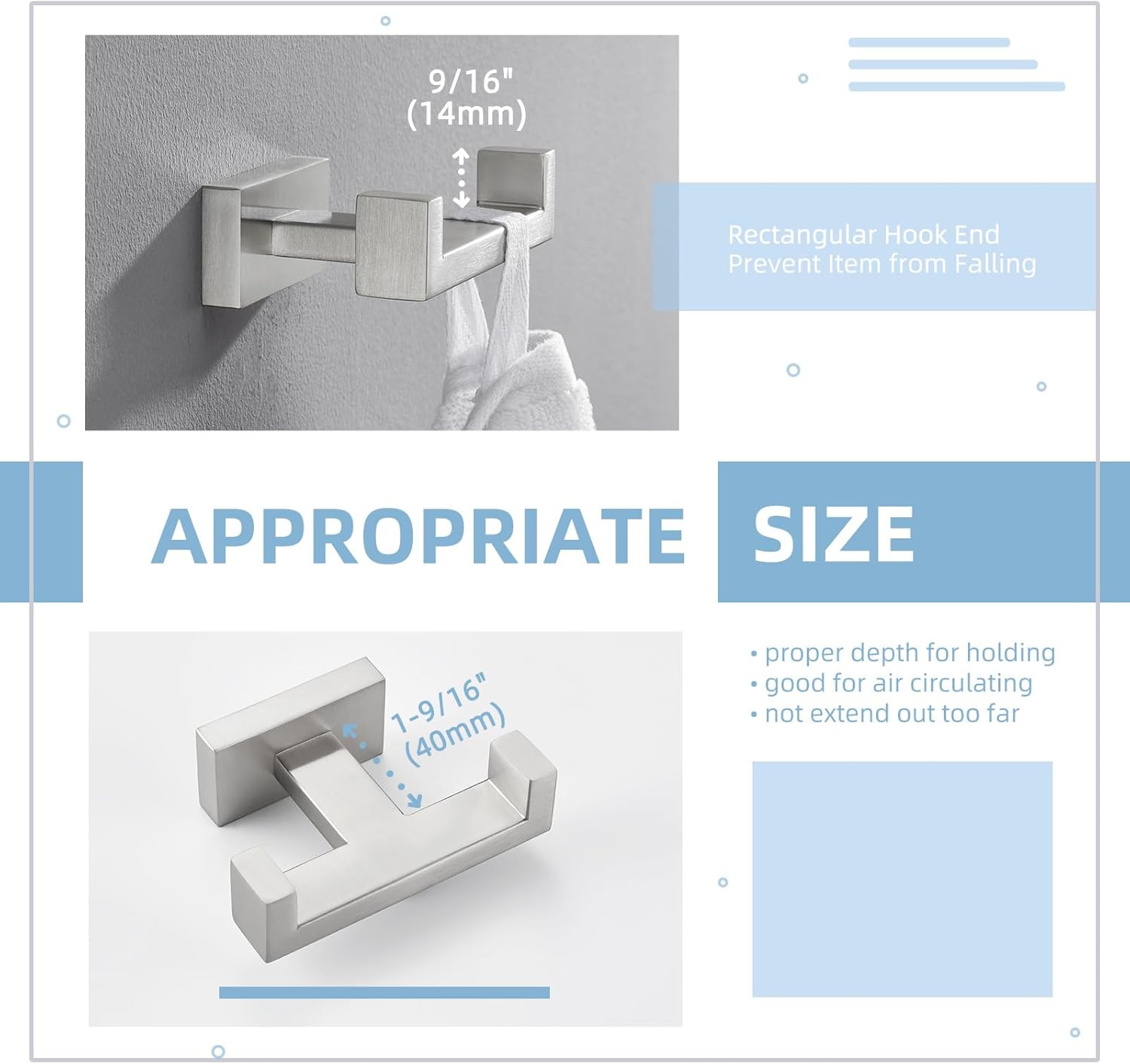 • EASY USE & BETTER DRYING: wide and right-angled hooks for ease of hanging up towels, distance between the hooks is 2-15/16"(75mm), allows enough air to dry out damp towels.