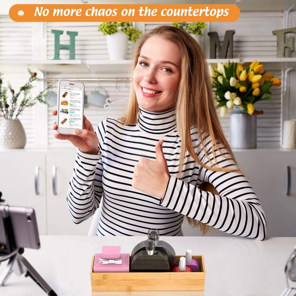 • 【Multi-functional Storage Box】 This deep bamboo organizer boxes are good for organizing items, such as forks, spoons, and knives in kitchen; brushes, soap dispenser and toilet paper in bathroom; cosmetics, makeup tools and hair accessories in makeup room; documents, pens and paper clips in office. Try this bamboo storage box organizer - ending clutter in your office desk and kitchen drawer.