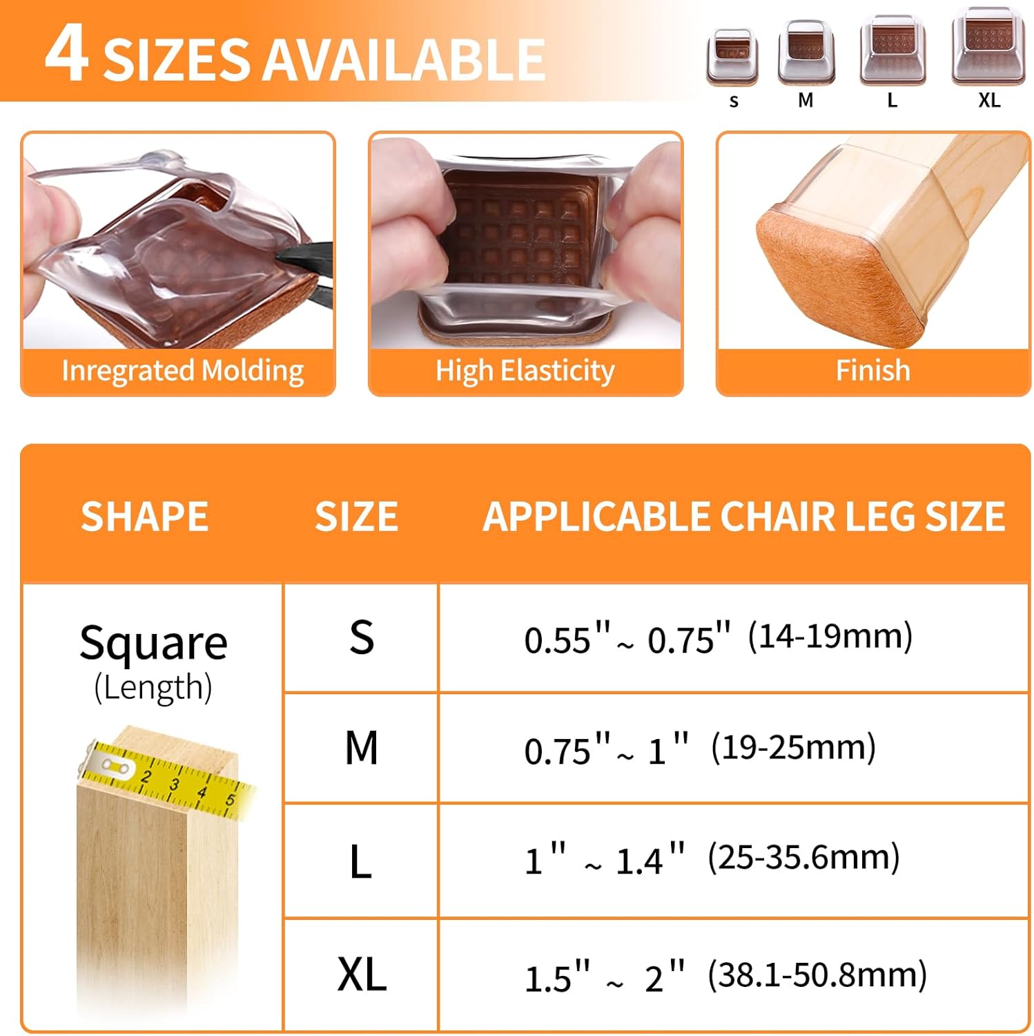 • ☛【Applicable Range】- Square S size fit Square Leg Side Length 3/5" to 7/10" (15-18mm) furniture legs.