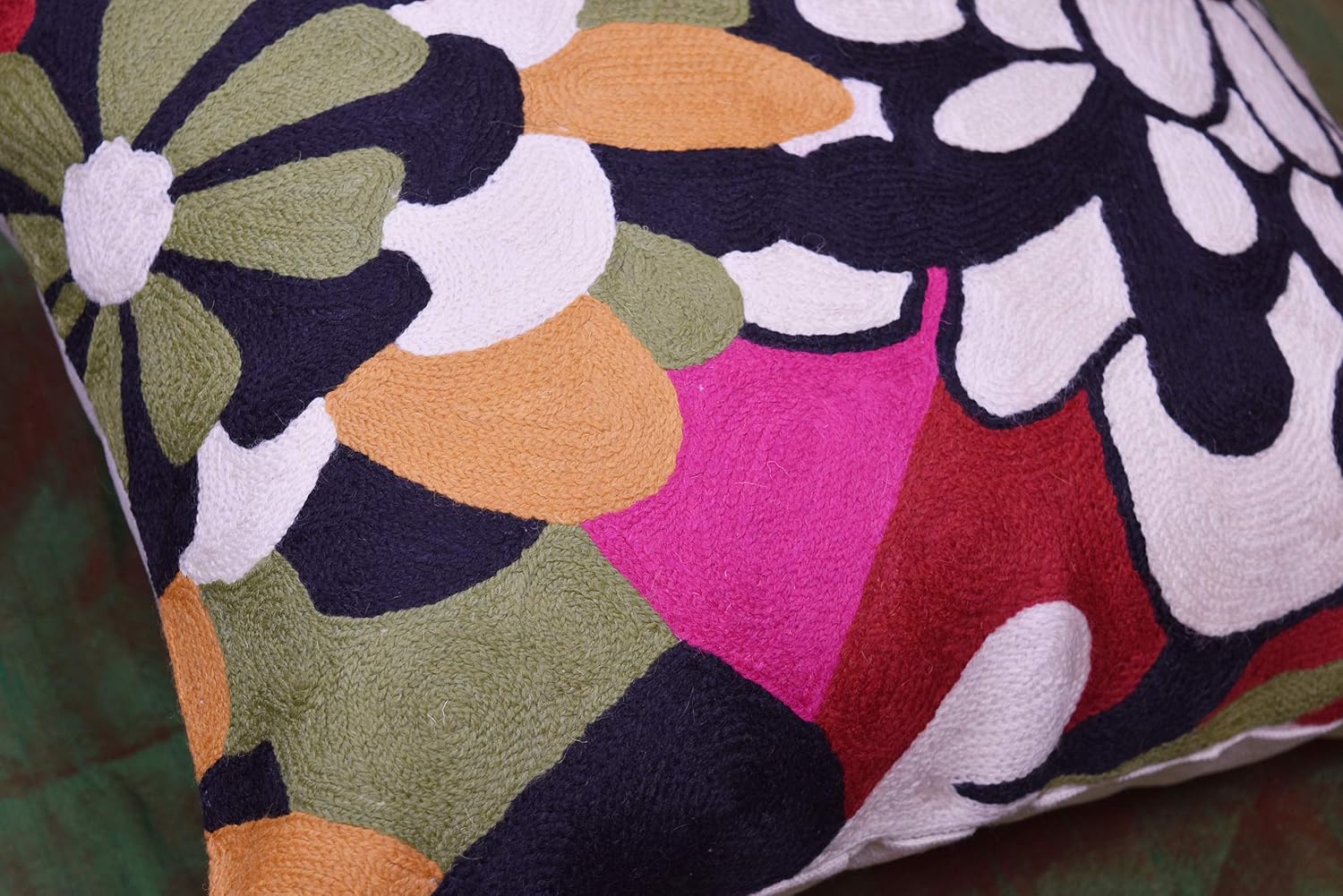• ๐Ÿ‘ FLORAL THROW PILLOW COVER - HAND EMBROIDERED: These colorful flower pillows are inspired from contemporary modern floral art designs and are hand embroidered in soft wool to perfection, stitch by stitch, by the finest artisans, creating an extraordinary all modern floral design pillow for your home decor. A close-up view of this all modern flower cushions allows you to see the amazing fine chain-stitch hand embroidery that covers the whole front side of this floral pillowcase.