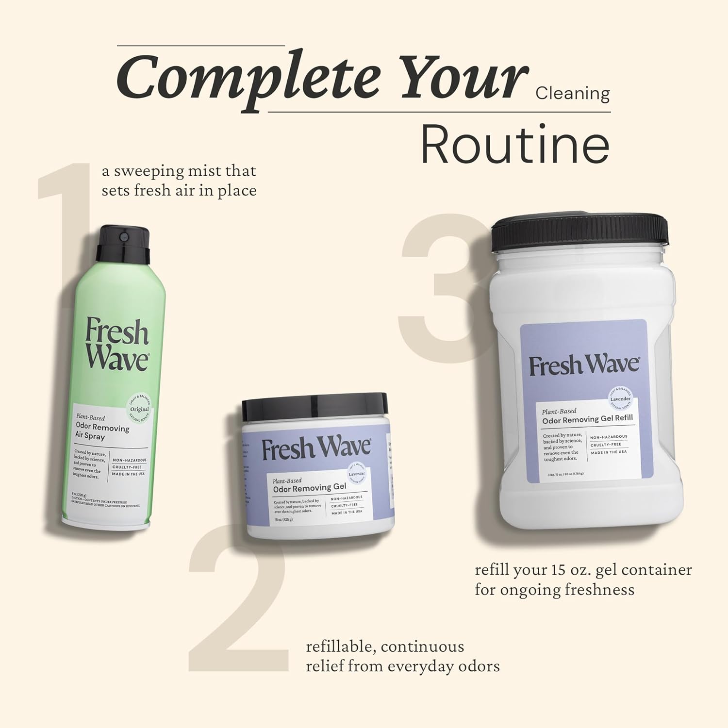• HIDDEN ROOM DEODORIZER: Each 15oz. of lavender odor gel lasts about 30-60 days and can be topped off with Fresh Wave Gel Refills as needed (sold separately). Tuck the odor neutralizer away on bookshelves, cabinets, closets, and trash canisters.