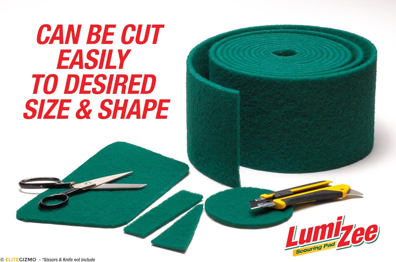 • Included Components : 19ft x 6in x 0.3in (6m x 15cm x 8mm) +/- .1in Size Tolerance of Heavy Duty Green Scouring Pad Sponge