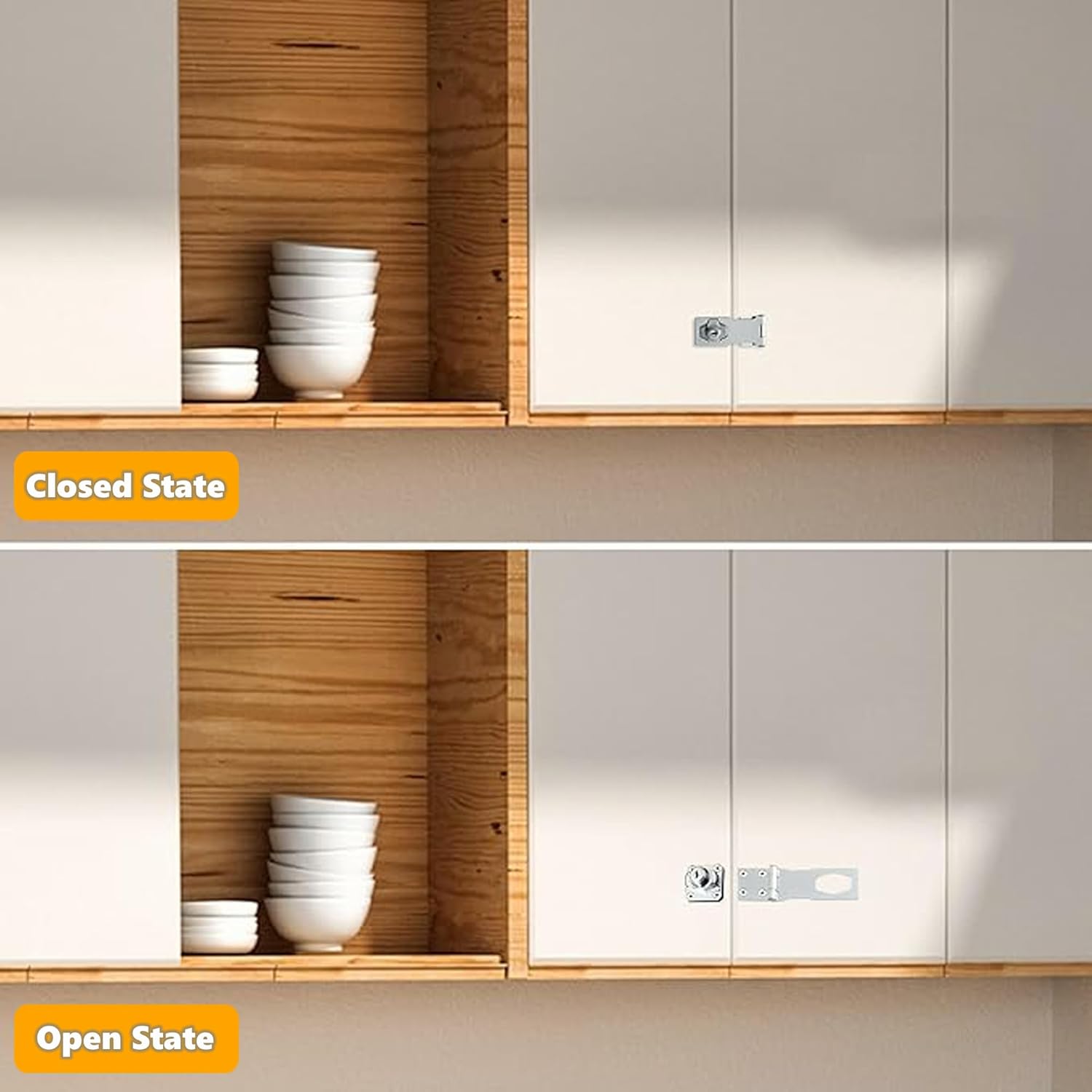 Alise Keyed Hasp Lock,3 Inch Safety Packlock Clasp Hasp Lock Latch with Lock,Door Hinge Lock with Keys Keyed Locking Hasp for Cabinets Closets Doors,Chrome