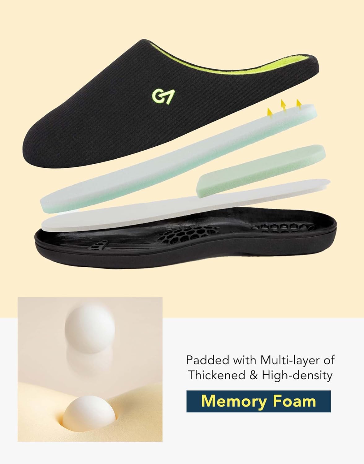 • Padded with high-density memory foam, multi-layered thickening foam and firm arch support design, these slippers really pamper your feet in cozy softness and keep each of your steps like walking on the pillows