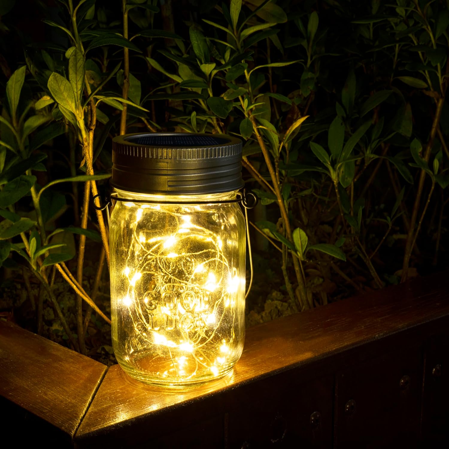 • The Best Outdoor Decorative Lights: These solar outdoor lights are combinations of glass mason jars and solar fairy light lids. Ideal for outdoor decorations, such as garden decor, patio decor, yard decor, and balcony decor. Compatible with tables, fences, walkways, lawns, and trees
