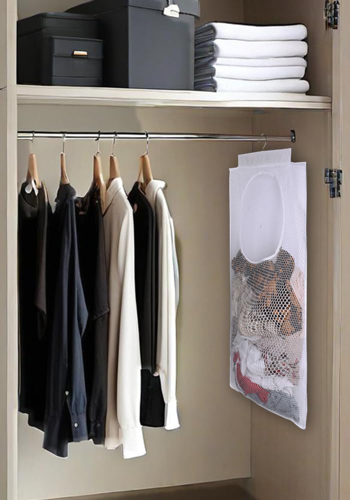ALYER Breathable Mesh Laundry Hamper,Foldable Hanging Closet Storage Basket,Portable Space Saving Dirty Clothes Bag (White)
