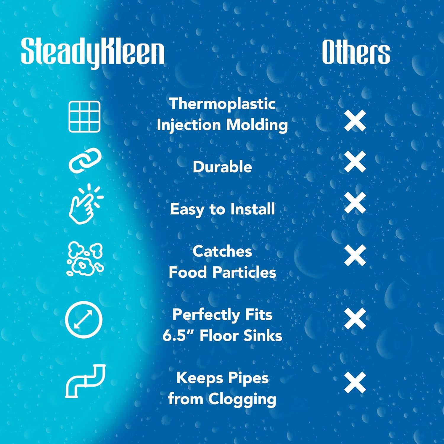 • Installs in Seconds - Our drain protector fits the floor sink securely. Thanks to this kitchen drain cover strainer’s simple drop-in design, you only have to drop it into a 6.5 floor sink hole. Remove it as needed.
