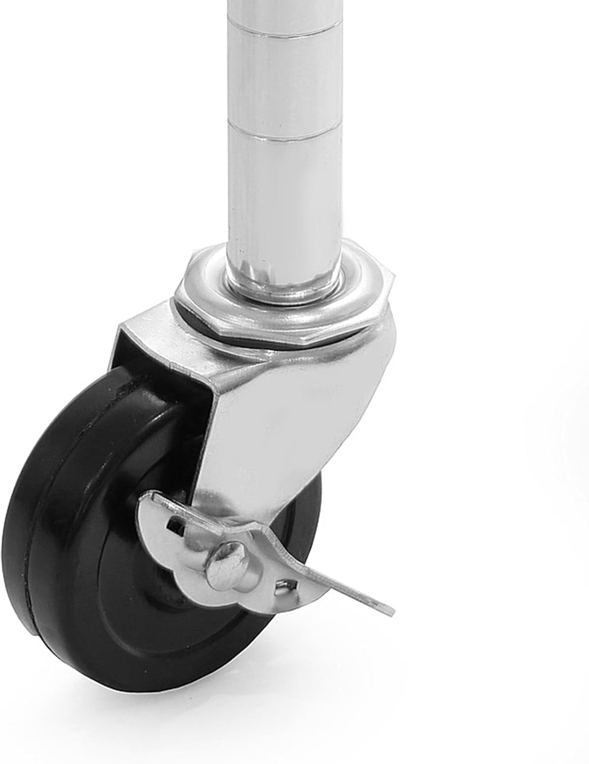 • What's in the Box? 5 shelves (24" x 18"), 4 pairs of poles (1" diameter), 4 wheels (3" diameter), 4 leveling feet, 20 slip sleeves