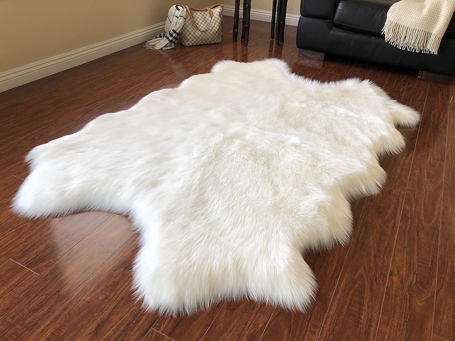 • SKIN FRIENDLY JAPANESE ACRYLIC YARN SHEEPSKIN FAUX: Give your home a touch of luxury with the sheepskin fur rug. Luxurious comfort with this ECO-friendly silky shag rug, faux sheepskin rug adds softness and warmth to your room. Looks and feels like real sheepskin, soft, plush, and silky multipurpose rug.