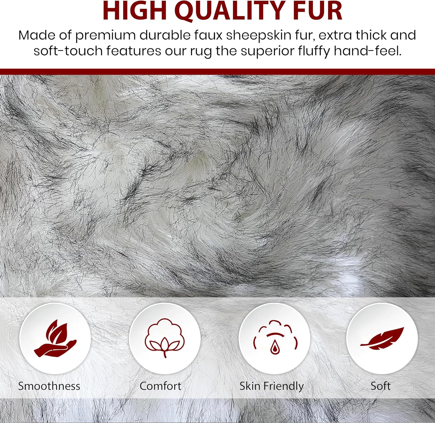 • ULTRA SOFT TOUCH FAUX FUR RUG: The soft materials of this shag rug is easy to clean, cozy on your feet as you walk, and make a perfect complement to your home with this rug. The collection features soft feeling sheepskin rug acrylic yarns furry rug that makes it easy to get cozy and delightful to touch. Faux sheepskin rug ensures its good durability and comfortable touch.