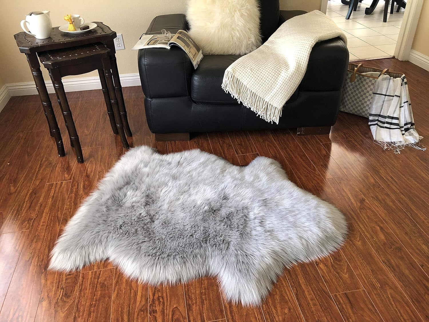 • SKIN FRIENDLY JAPANESE ACRYLIC YARN SHEEPSKIN FAUX: Give your home a touch of luxury with the sheepskin fur rug. Luxurious comfort with this ECO-friendly silky shag rug, faux sheepskin rug adds softness and warmth to your room. Looks and feels like real sheepskin, soft, plush, and silky multipurpose rug.