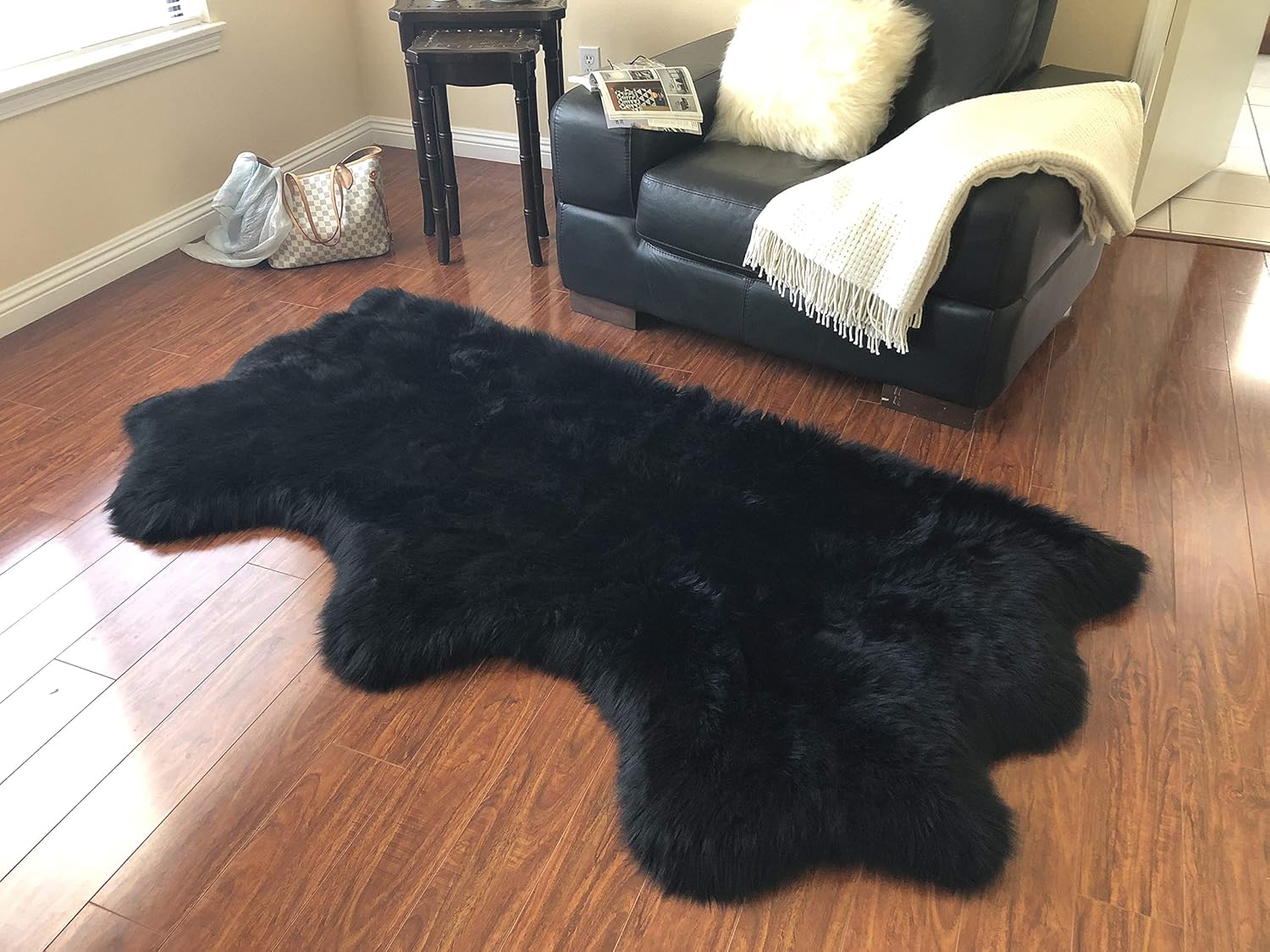 • MULTIPURPOSE DESIGN REAL SHEEPSKIN RUG: The sheepskin rugs are multipurpose and used as seat covers rug, couch pads, and area carpets. The stain-resistant, latex-free rug is designed for daily indoor use faux fur that is a super soft material rug under your feet. This free shape silky shag rug that works with a wide variety of decors great addition for kid’s room rug.