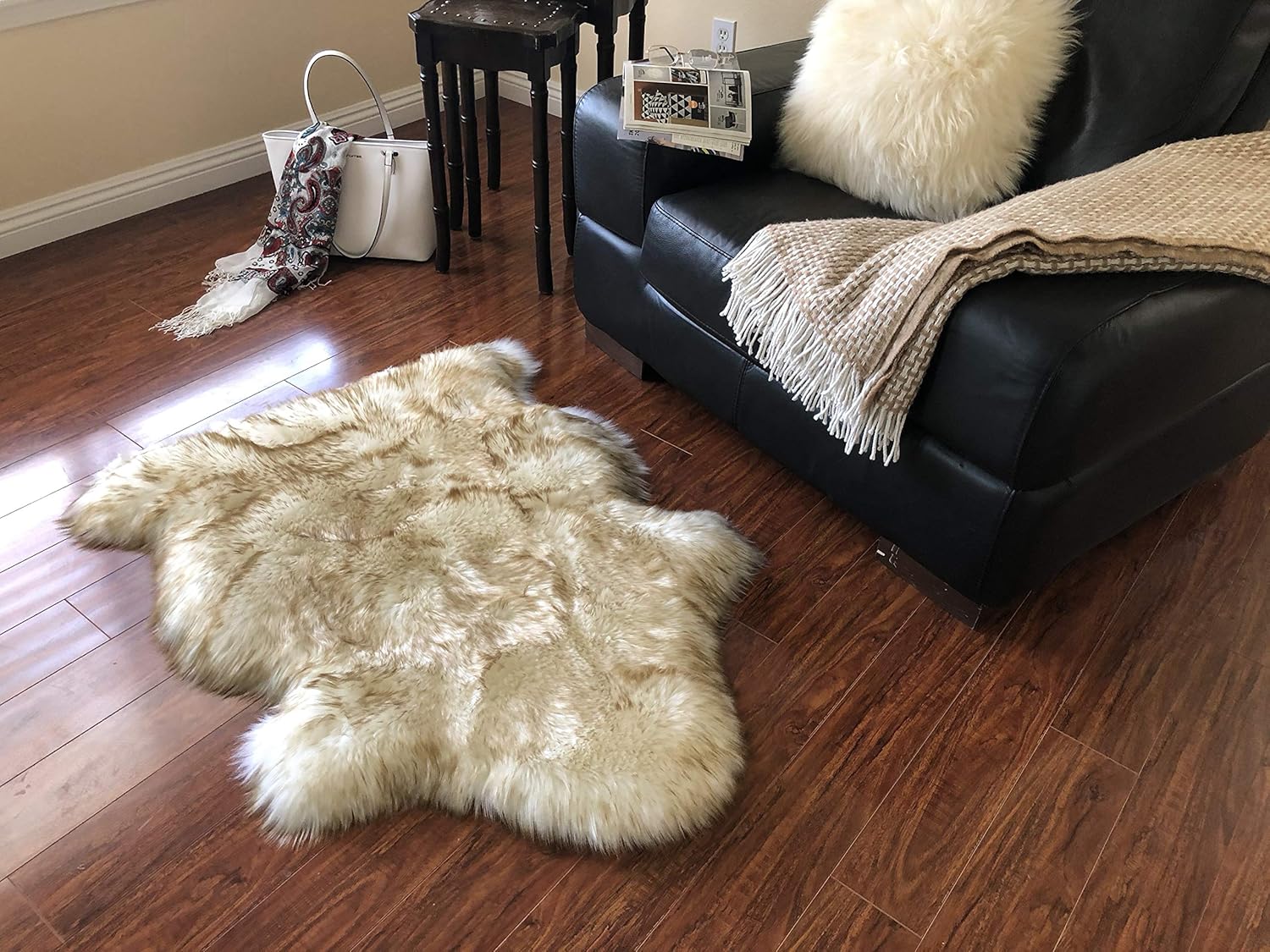 • SKIN FRIENDLY JAPANESE ACRYLIC YARN SHEEPSKIN FAUX: Give your home a touch of luxury with the sheepskin fur rug. Luxurious comfort with this ECO-friendly silky shag rug, faux sheepskin rug adds softness and warmth to your room. Looks and feels like real sheepskin, soft, plush, and silky multipurpose rug.