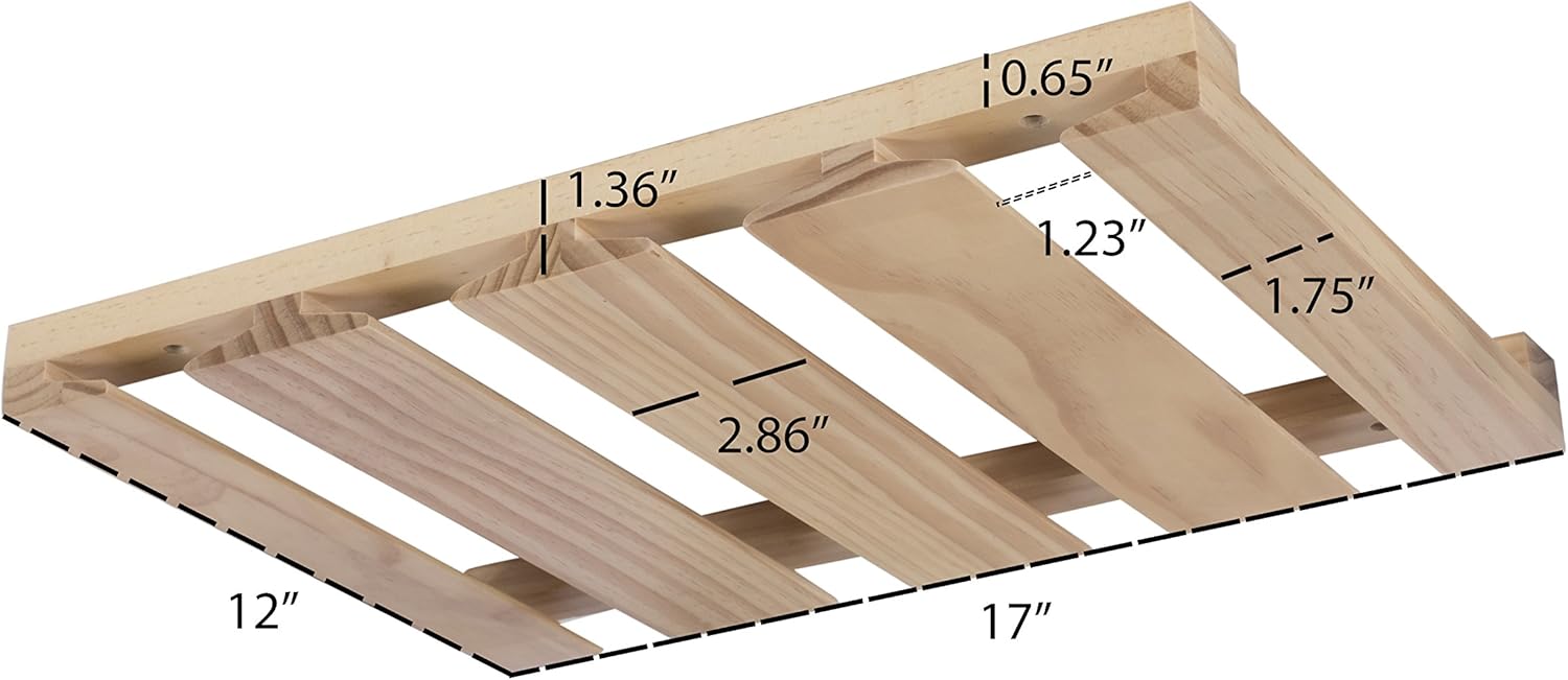 • Stemware Display: With the beautifully crafted wine glass storage rack, you can display your antique, vintage or hard to find fluted glasses to make yourself happy every time you walk into your kitchen. Product Measurements: W 17" D 12" H 1.36"