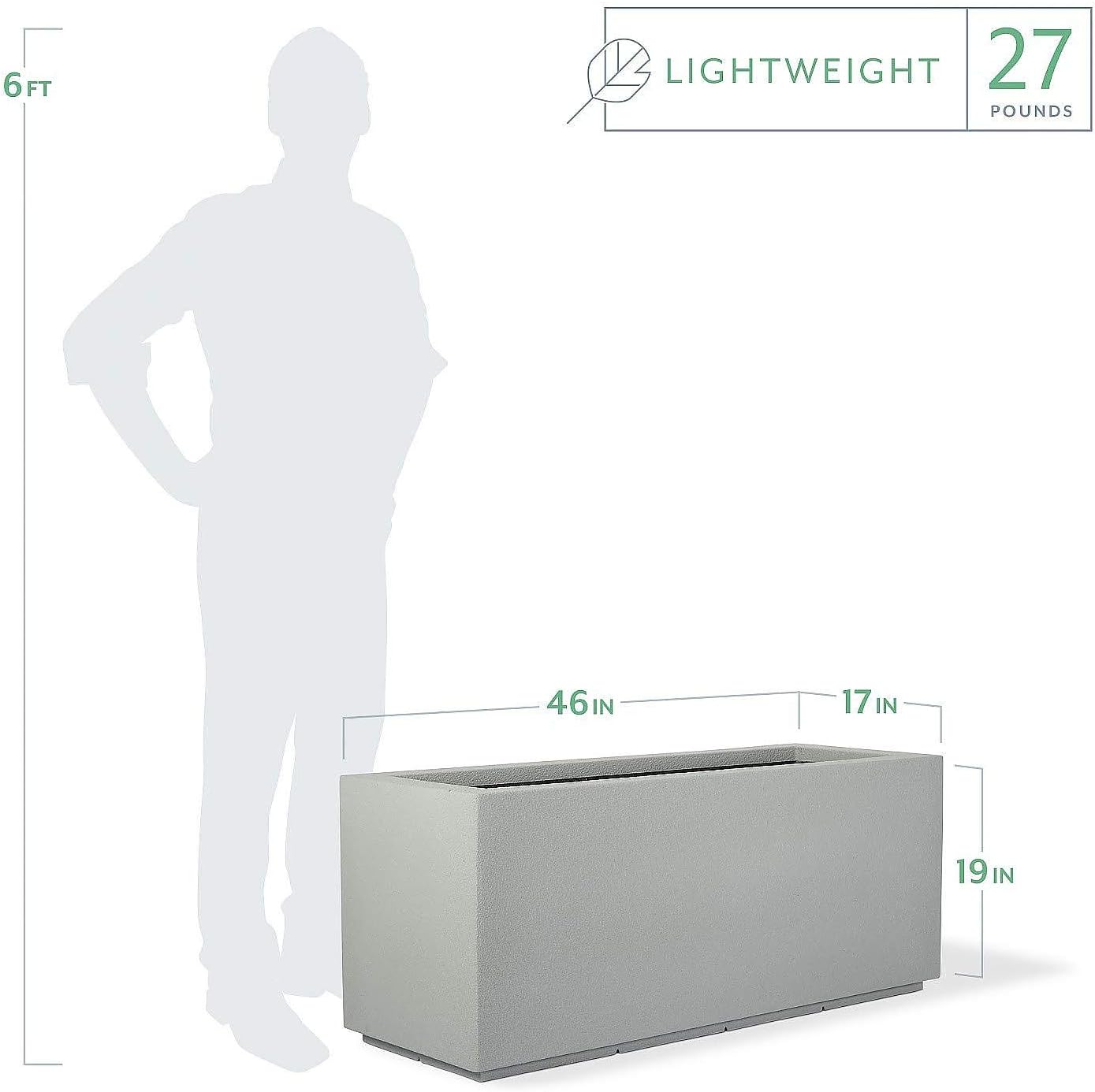 • LIGHTWEIGHT AND DURABLE: PolyStone Planters are made like no other on the market today! Our innovative long garden containers are handcrafted of three distinct eco-friendly layers which provide extreme durability. With the substantial appearance of cast-stone or concrete, even the largest sizes of our planters are surprisingly lightweight and easy to handle.