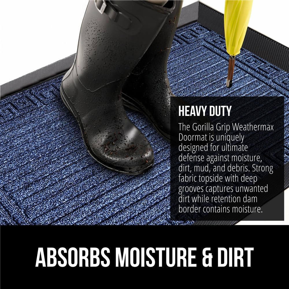 • THE ORIGINAL WEATHERMAX ALL SEASON DOORMAT: Gorilla Grip's Original WeatherMax doormat is built tough with a heavy duty, yet soft and flexible construction; deep grooves, beveled rubber border and retention dam help capture dirt, debris and moisture