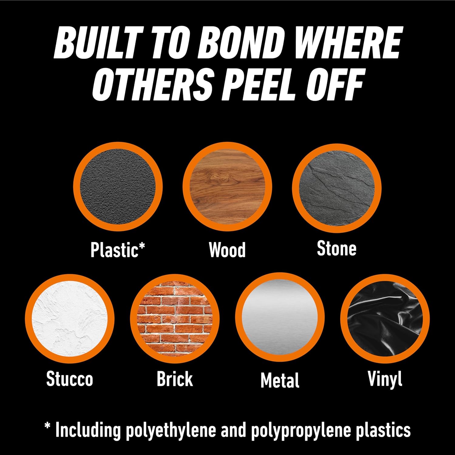 • Gorilla tough: This heavy duty tape has a low tack, strong adhesive that resists drying, cracking, and peeling caused by sunlight, heat, cold, and moisture